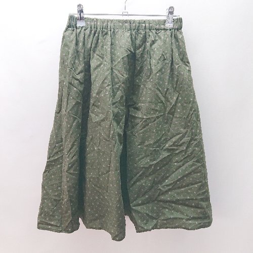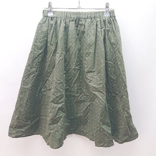 ◇ UNIVERVAL MUSE ウエストゴム 総柄 裏地付き 膝丈 フレア スカート サイズ表記なし グリーン系 レディース E