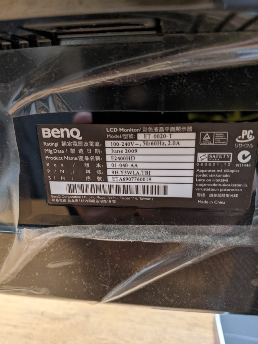 IY1489 BENQ E2400HD 24インチ液晶モニター 2009年製 動作OK 現状品