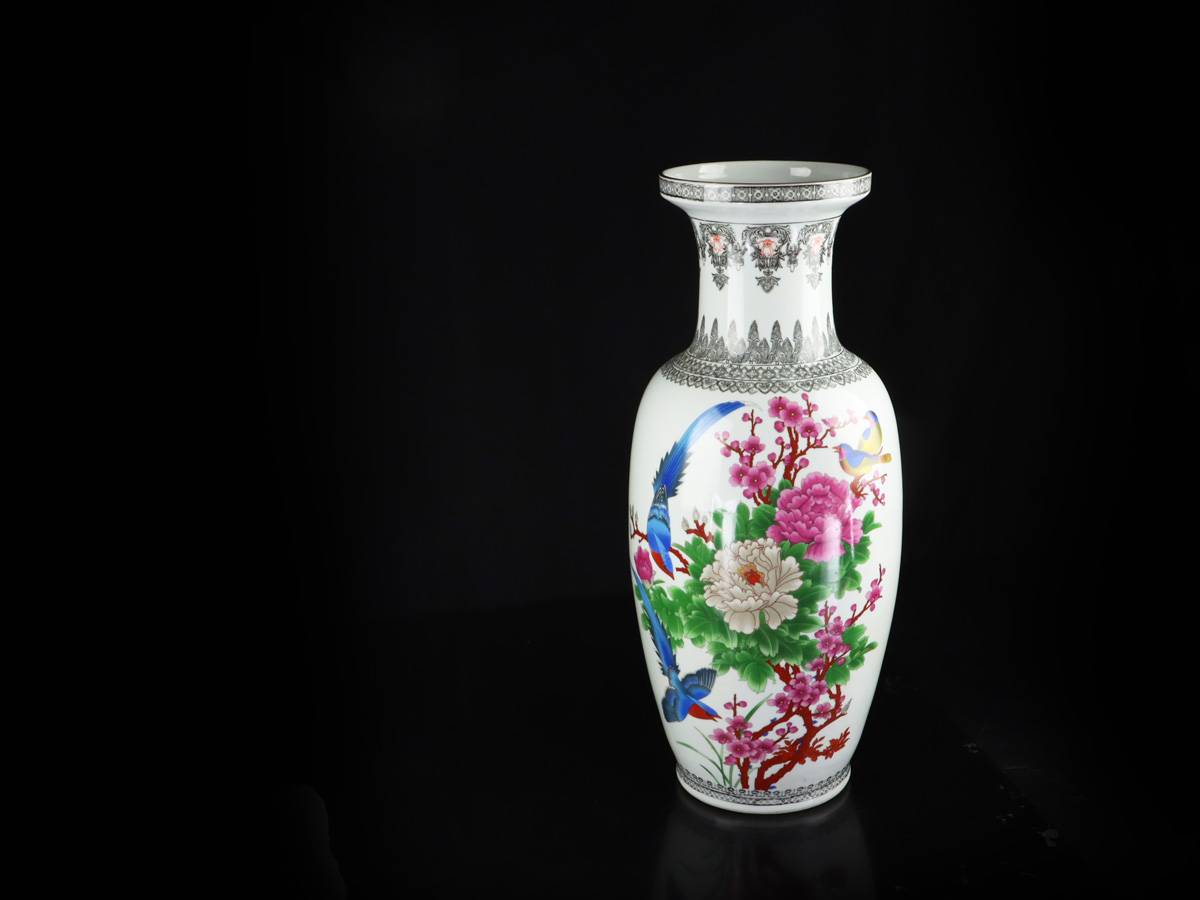 サイズ(約) 高さ 60.5㎝/口径 19㎝/重量 5.44㎏ 付属品 - 中国美術 景徳鎮製 底款 粉彩色絵花鳥図 大花瓶 飾壷 高さ60.5㎝ 重量5.44㎏ 時代古玩 旧家ウブ出し 中国景徳鎮製、粉彩色絵大花瓶でございます。 花鳥図が大変美しい大型で存在感あるお品です。 底に汚れ等ありますが、割れなく良品でございます。 |