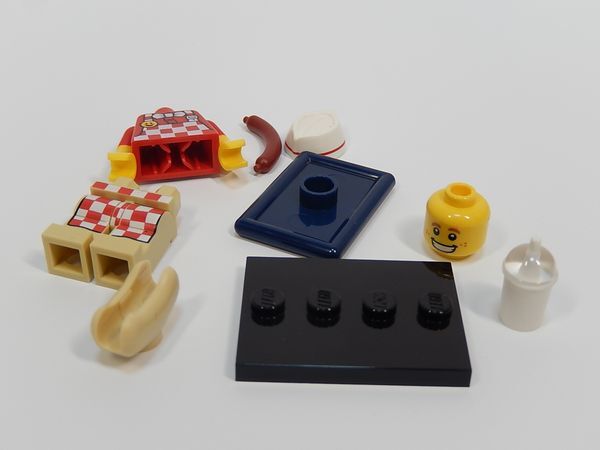 ■LEGO 71018 Minifigures Series17/Hot Dog Vendor /レゴミニフィグ シリーズ17 ホットドッグ屋さんです。中を確認するために開封しています(未組立)。組立イメージは封入されているリーフのものです。現状渡しです。