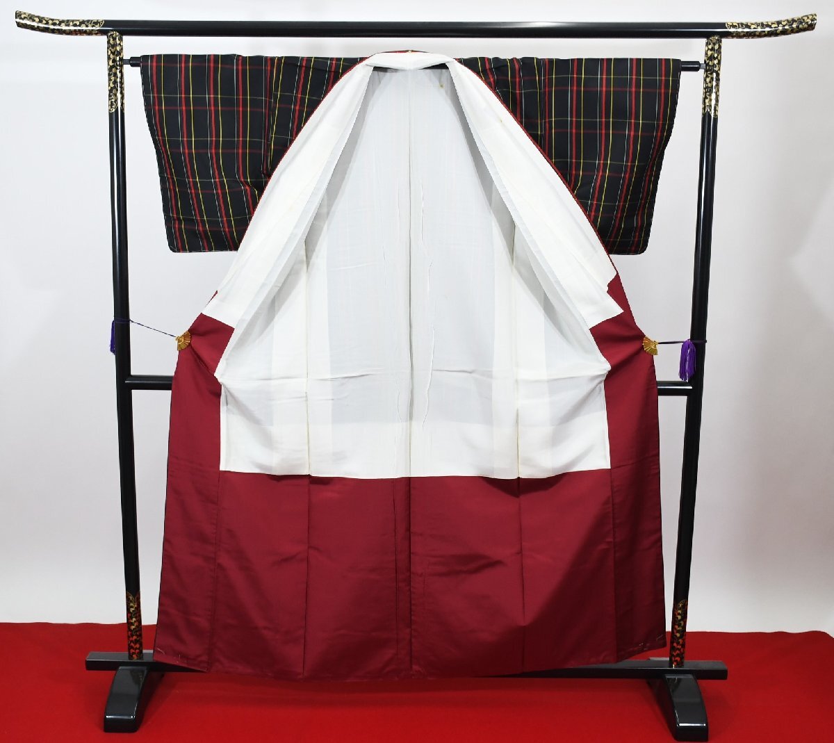 サイズ | ▼身丈 (背中から) 153cm ▼裄丈 64cm ▼袖丈 49.5cm ▼後巾 28.5cm ▼前巾 24.5cm |