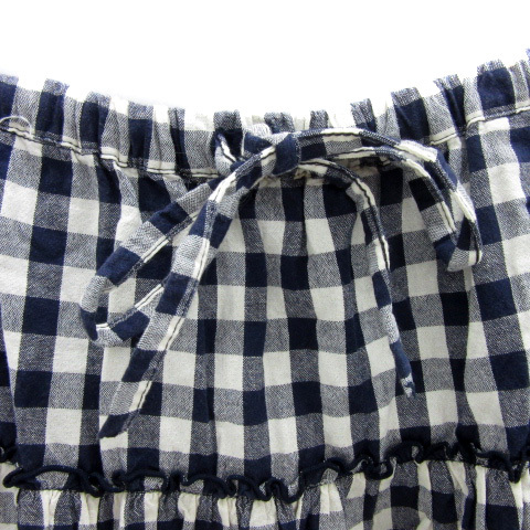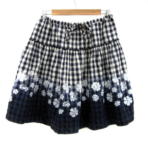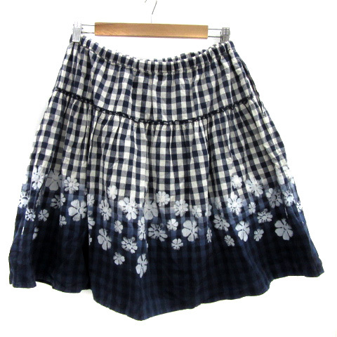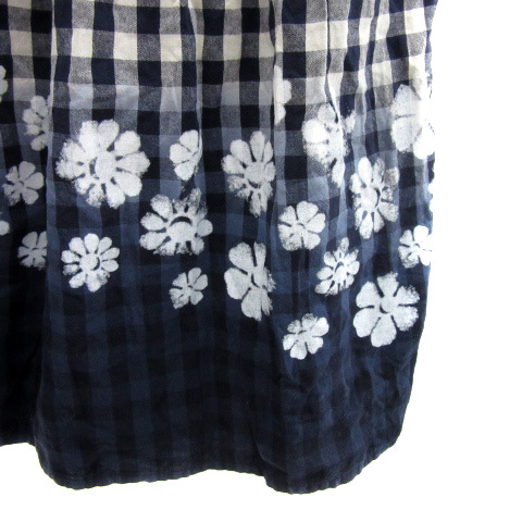 アズノウアズ ピンキー フレアスカート ギャザースカート ミモレ丈 ギンガムチェック柄 花プリント F 紺 ネイビー レディース