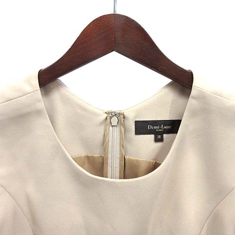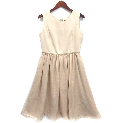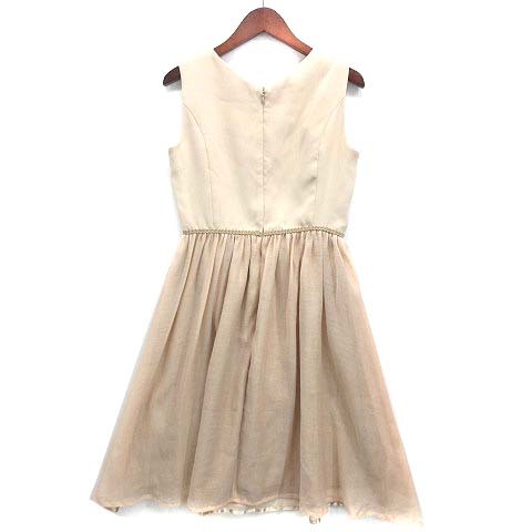 デミルクス ビームス Demi-Luxe BEAMS オーガンジー フレア ノースリーブ ワンピース ドレス 膝丈 異素材切替 ベージュ 38 レディース