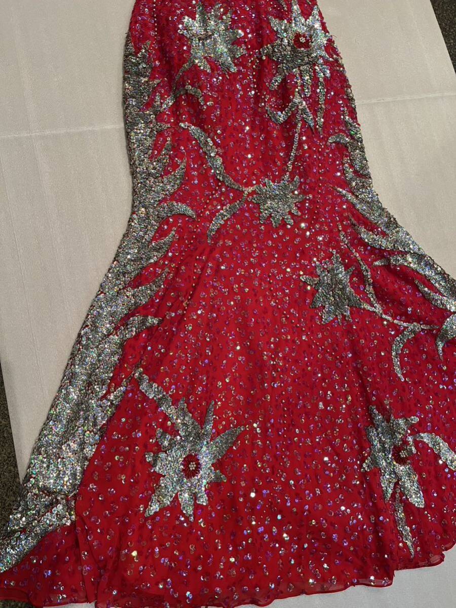 全体的にスパン/ボールビーズ/ラインストーンが使用されていて重量のあるしっかりしたドレスですので少しのスパンの緩み等はご了承下さい。