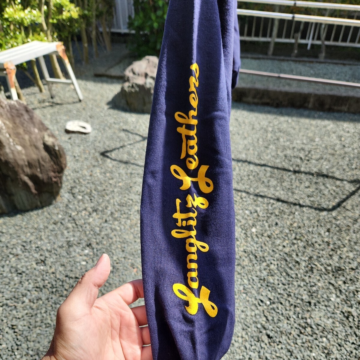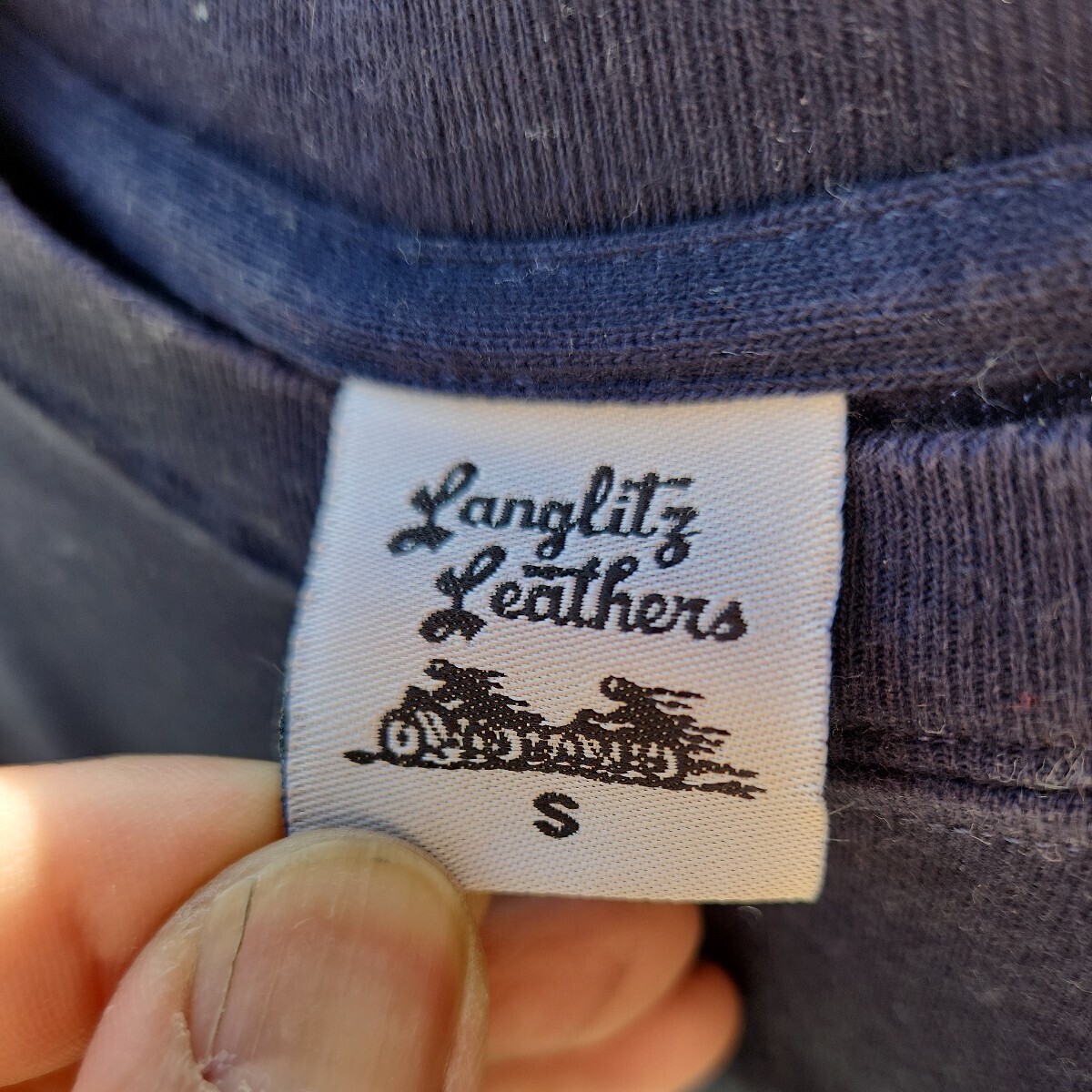 ネイビーのラングリッツレザーの長袖Tシャツです。SサイズですがUSサイズなのか大きめなので180cm70kgの痩せ型体系ですがちょうどいい感じです。