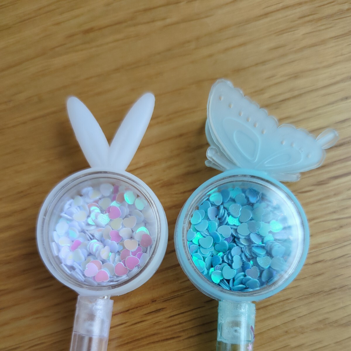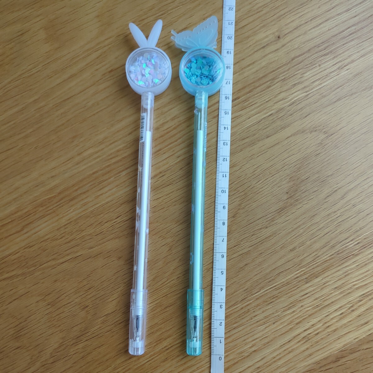 【新品未使用】非売品 チャーム付きボールペン 2種セット うさぎ ウサギ 兎 ラビット ちょうちょ 蝶々 バタフライ クリア 花 フラワー