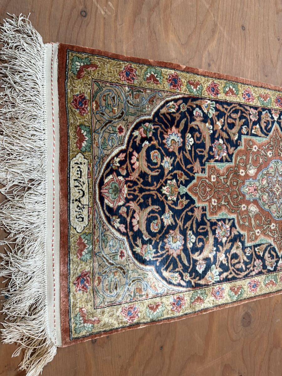 本物保証 最高級ペルシャ絨毯 イラン クム産 工房マーク有 シルク 110万ノット以上 メダリオン 総手織 91×45㎝ マット