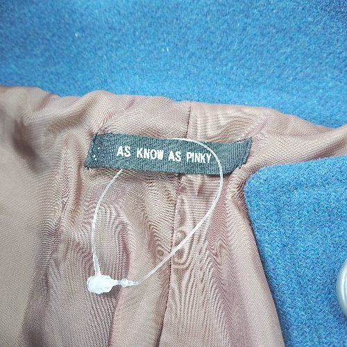 ◇ AS KNOW AS PINKY アズノゥアズピンキー スタンド襟 ロング丈 長袖 コート サイズF ブルー系 レディース E
