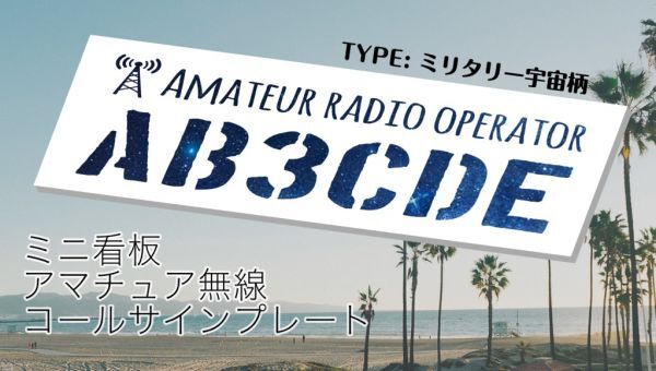 【オーダーコールサインプレート】③TYPEミリタリー宇宙柄  文字入れします  uv加工 耐久アルミ複合版 看板 アマチュア無線局