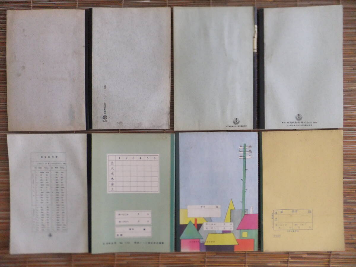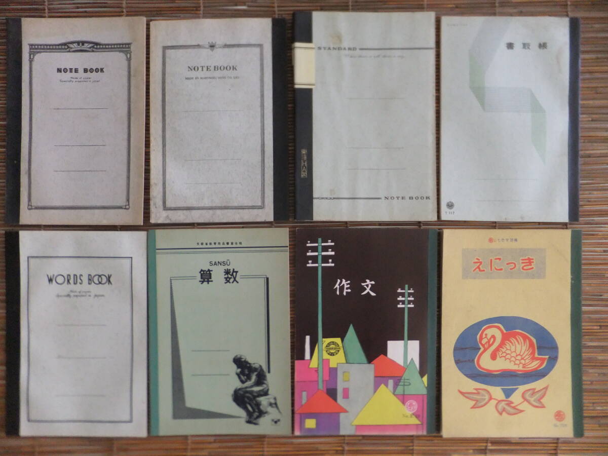 | E29★三丁目の夕日★昭和レトロ 駄菓子屋文房具 昭和30年代~当時物未使用大学ノート 書取帳 作文 算数 えにっき 横罫 全8冊 |