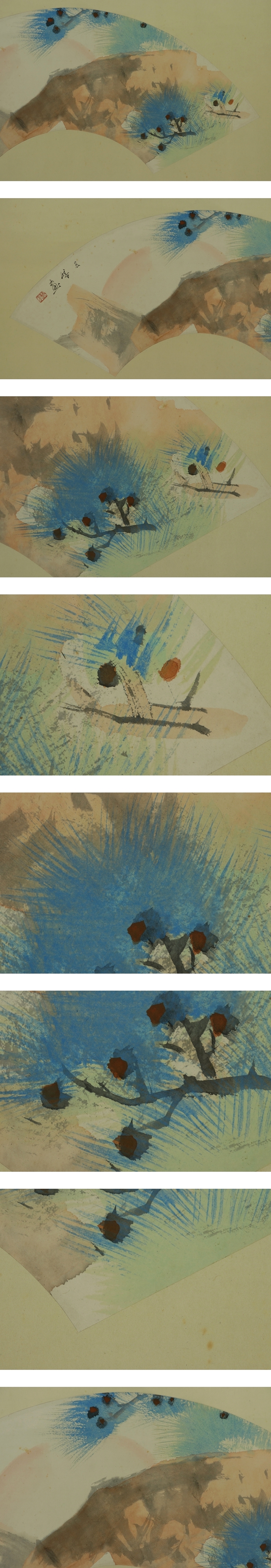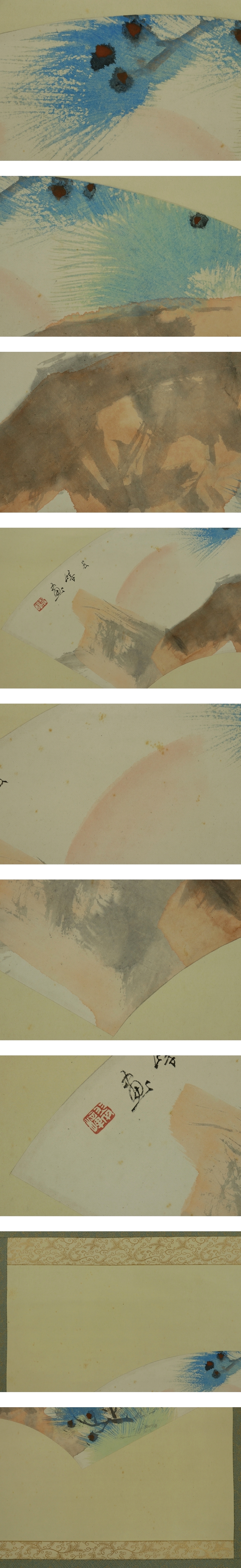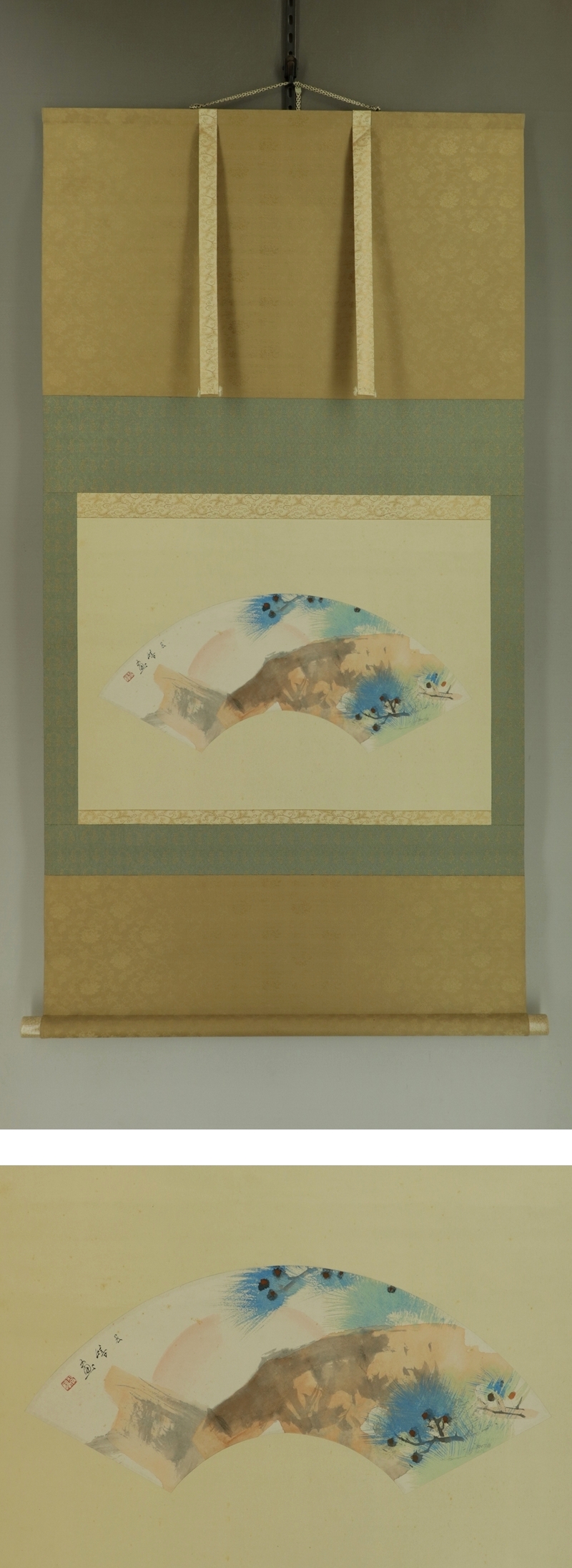 | №2404018【模写】西山翠嶂【扇面・老松旭光】◆紙本◆共箱◆二重箱◆掛軸 | |