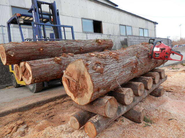 ※原木の取り扱い、搬出、選別等では重機を使っており、樹皮はげ等が有る場合も御座います。 |