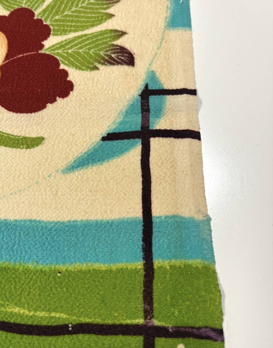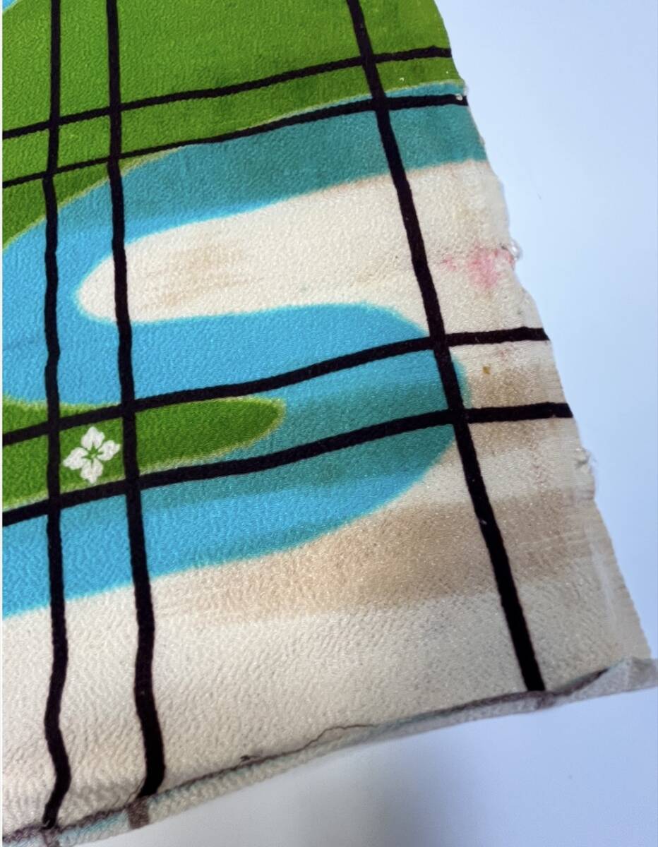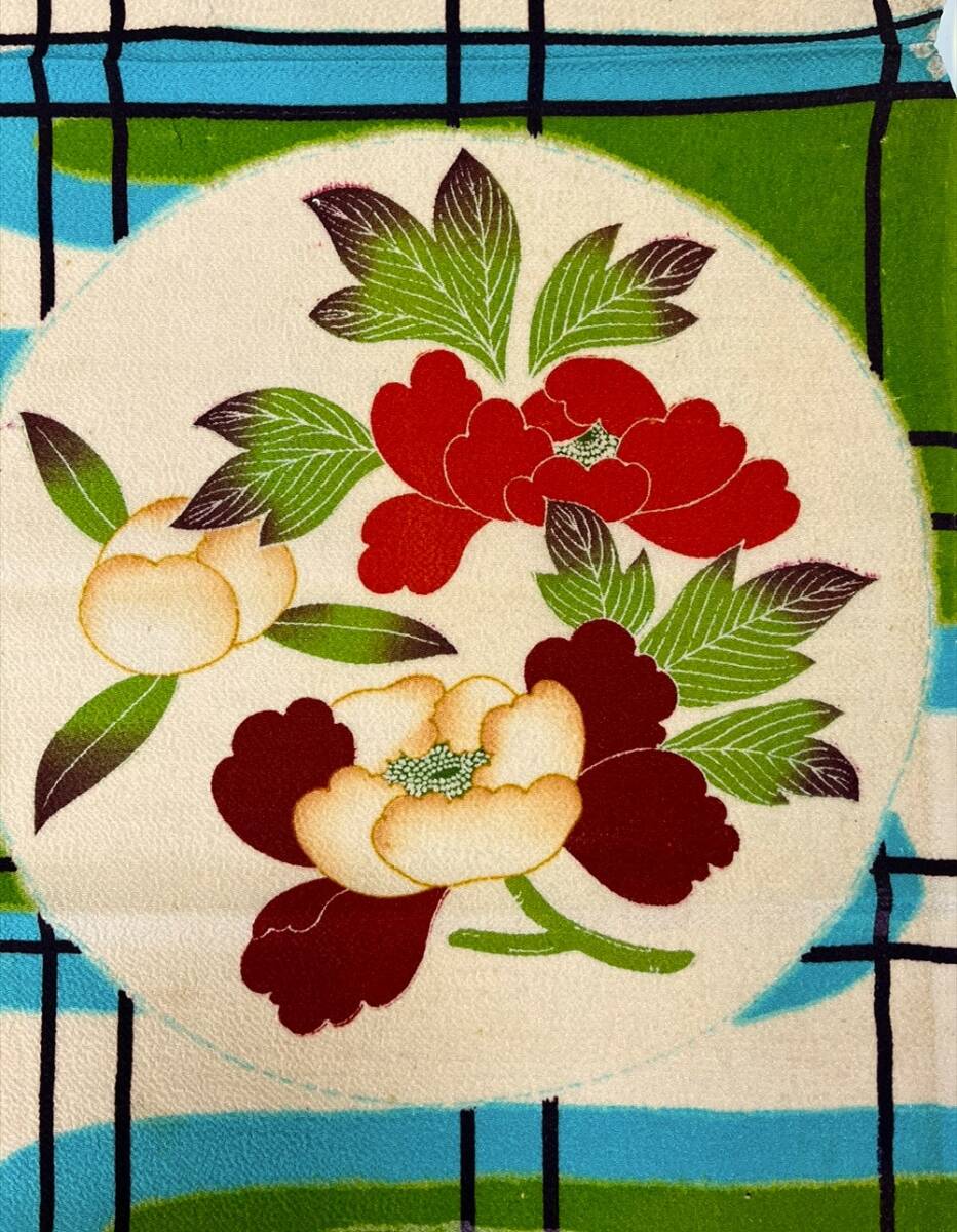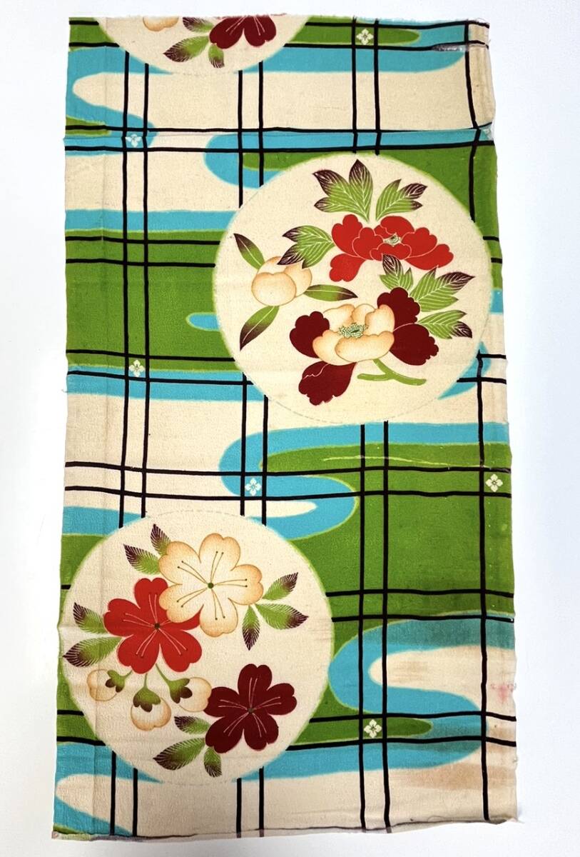 花とら●リサイクル端切れ 格子 花丸 ちりめん リメイク 素材 細工用    240424-21