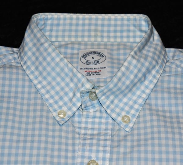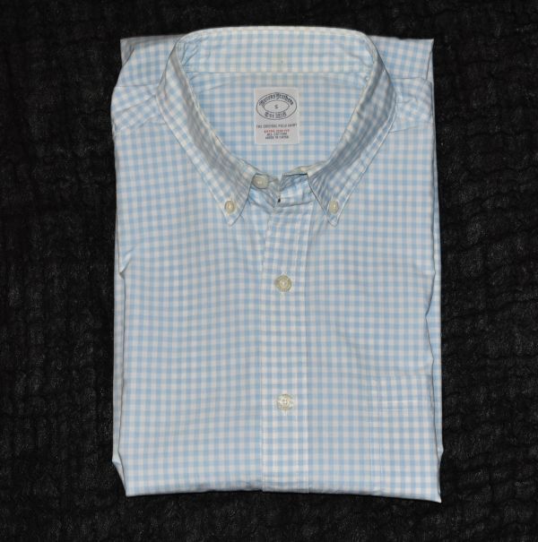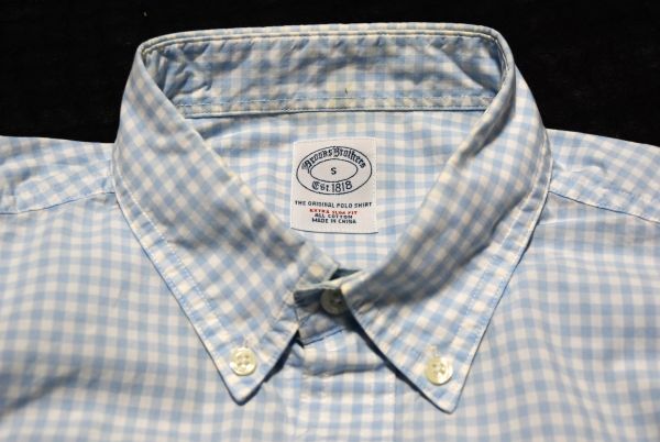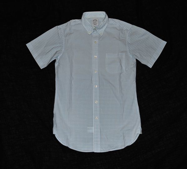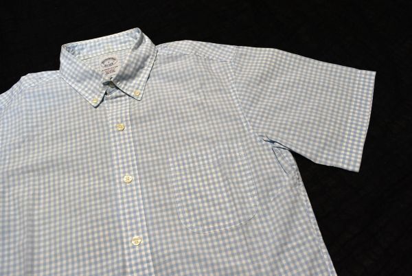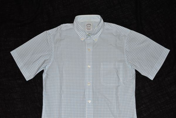 ★ブルックスブラザーズ★白ブルーのギンガムチェックのお洒落なボタンダウンの半袖シャツ S M