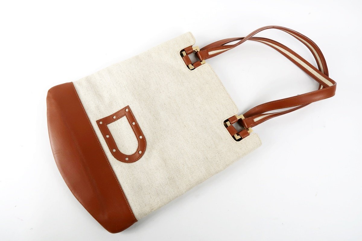 【美品】DELVAUX デルボー 王室御用達 トートバッグ キャンバス×レザー ゴールド金具【QP14】 |