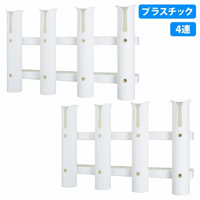 [4連 2個セット] ロッド ホルダー 竿 立て 置き 入れ 釣り フィッシング スタンド ネジ付 固定 船 漁船 ボート 白 ホワイト