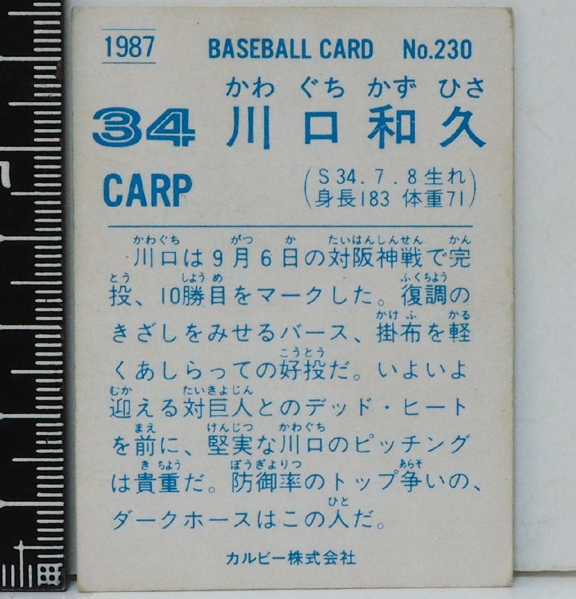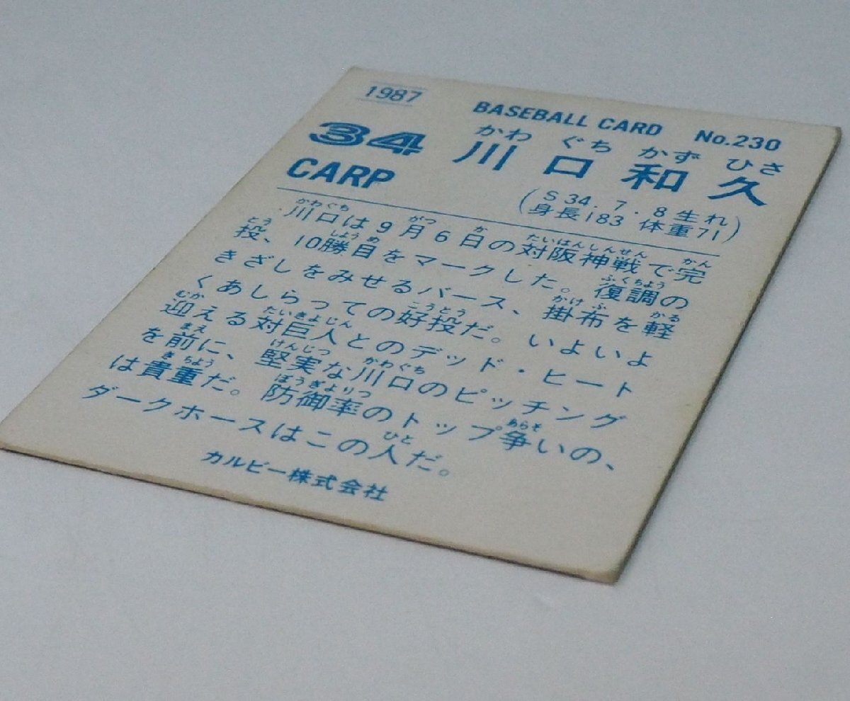 87年 カルビー プロ野球カード No.230【川口 和久 広島東洋カープ】昭和62年 1987年 当時物 Calbee おまけ 食玩 BASEBALL【中古】送料込