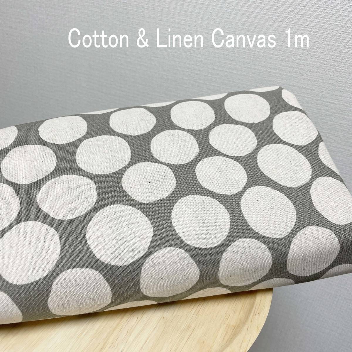 北欧風まんまるドット柄★綿麻キャンバス生成コットンリネン生地はぎれ布1mグレー