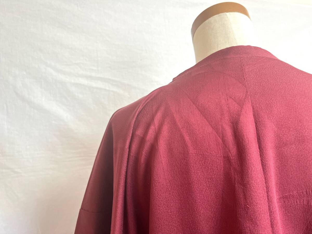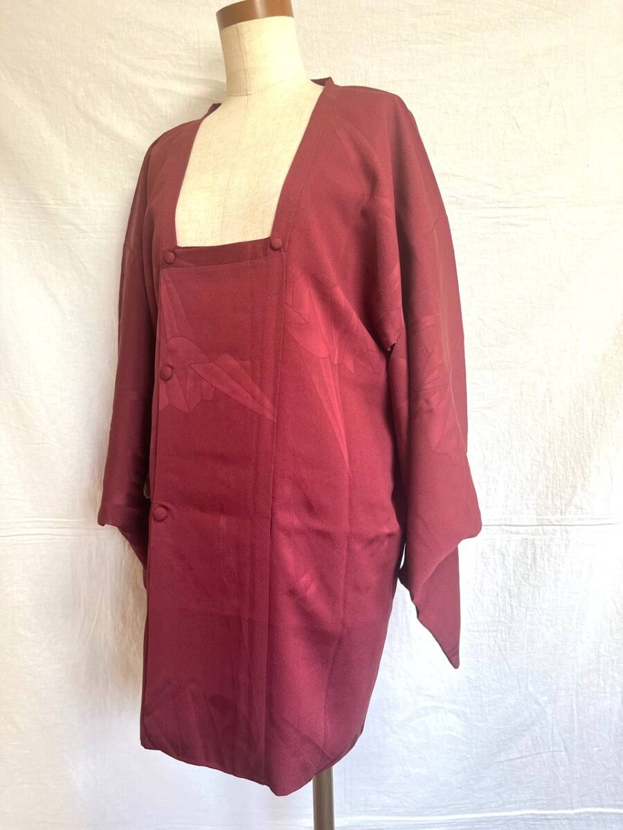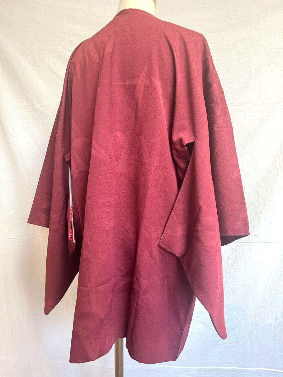 0007★道行コート*えんじ*折り鶴*手縫い*和装コート*羽織*美品*着物*和服*和装*道中着*レトロ*アンティーク*レディース*お得
