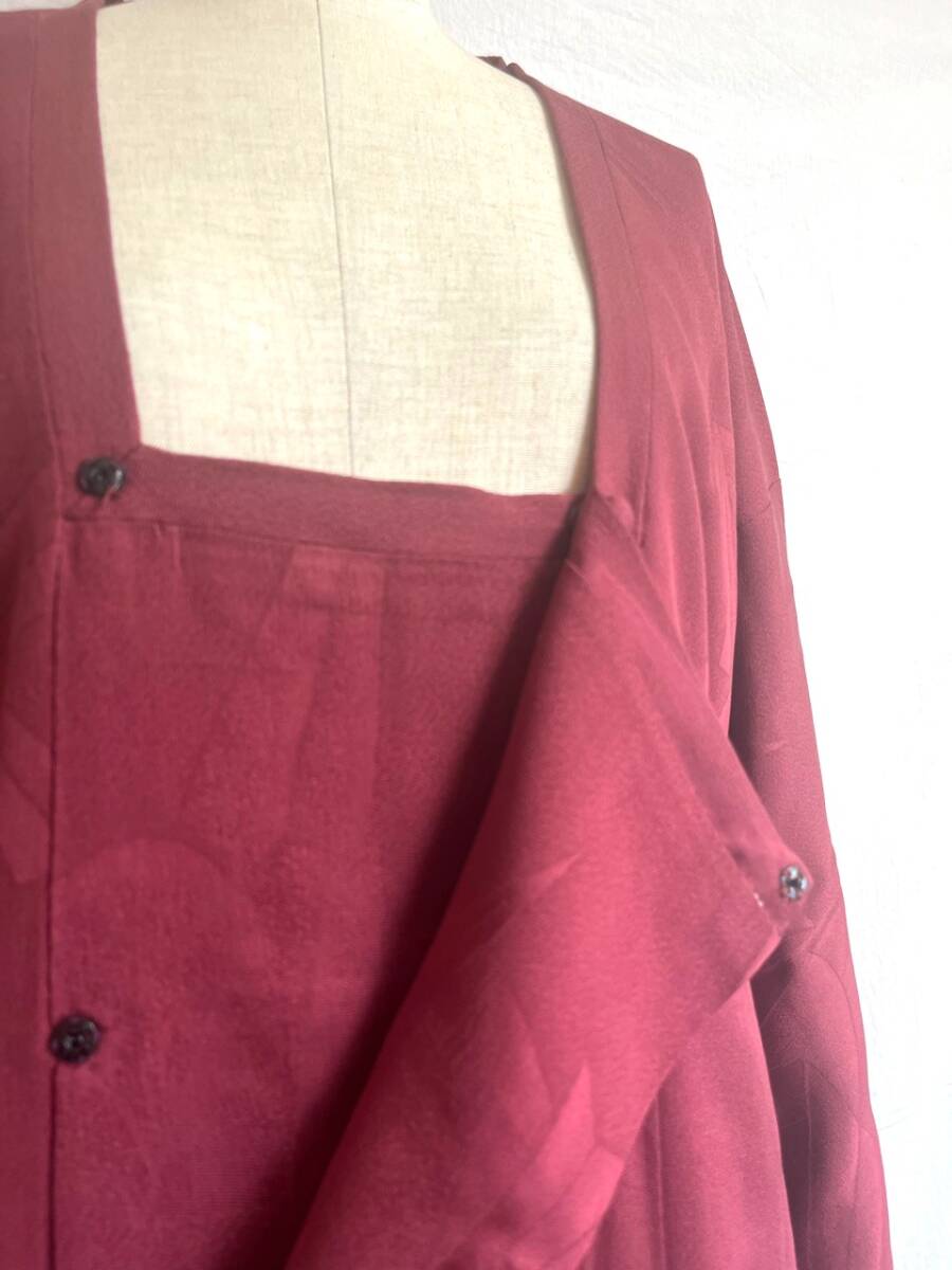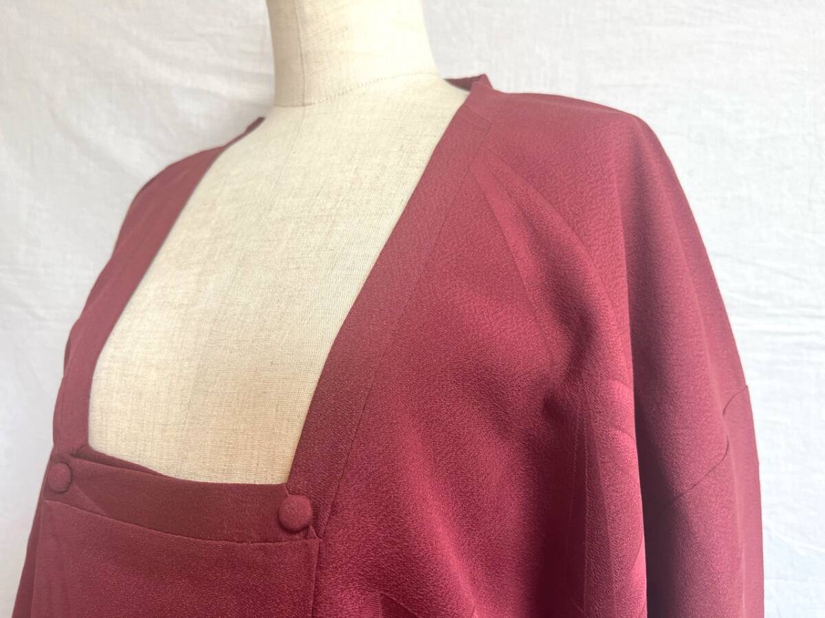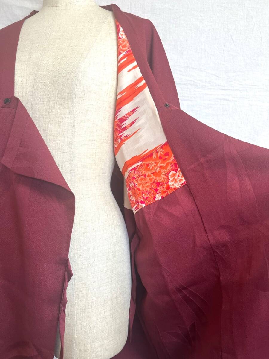 0007★道行コート*えんじ*折り鶴*手縫い*和装コート*羽織*美品*着物*和服*和装*道中着*レトロ*アンティーク*レディース*お得