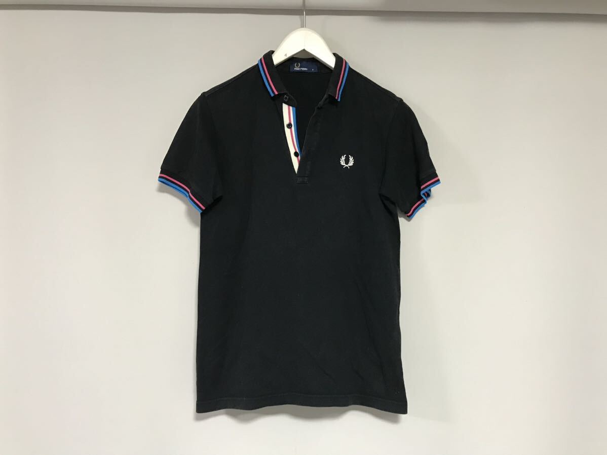 商品名:本物フレッドペリーFREDPERRYコットンロゴ刺繍半袖ポロシャツメンズサーフアメカジミリタリーワークゴルフスポーツ黒ブラックS日本製