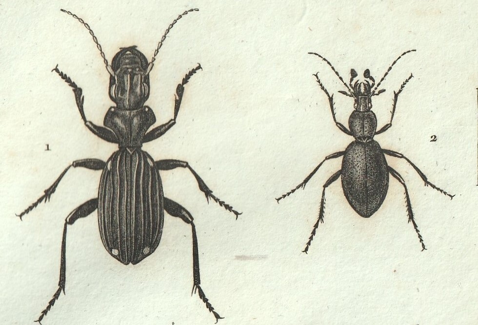 1816年 銅版画 Turpin 自然科学辞典 昆虫学 甲虫類 アリモドキ科 オサムシ科 ゾウムシ科など6種 キンイロオサムシ 博物画