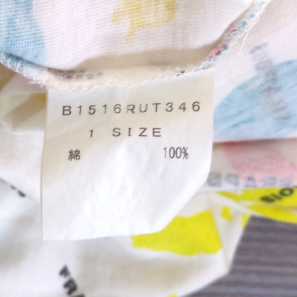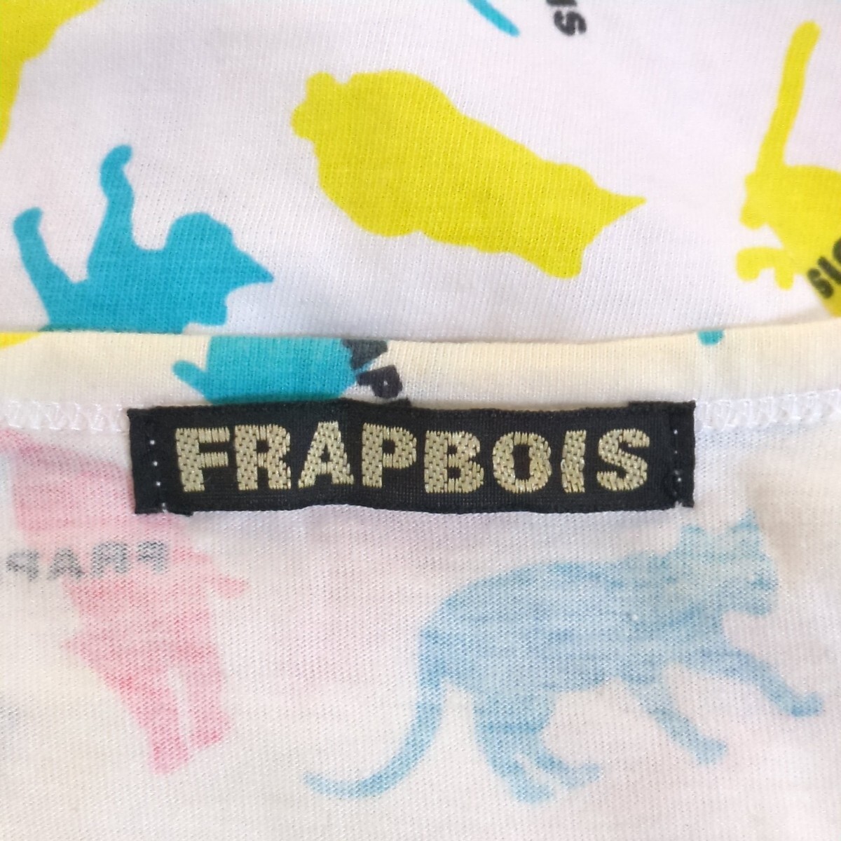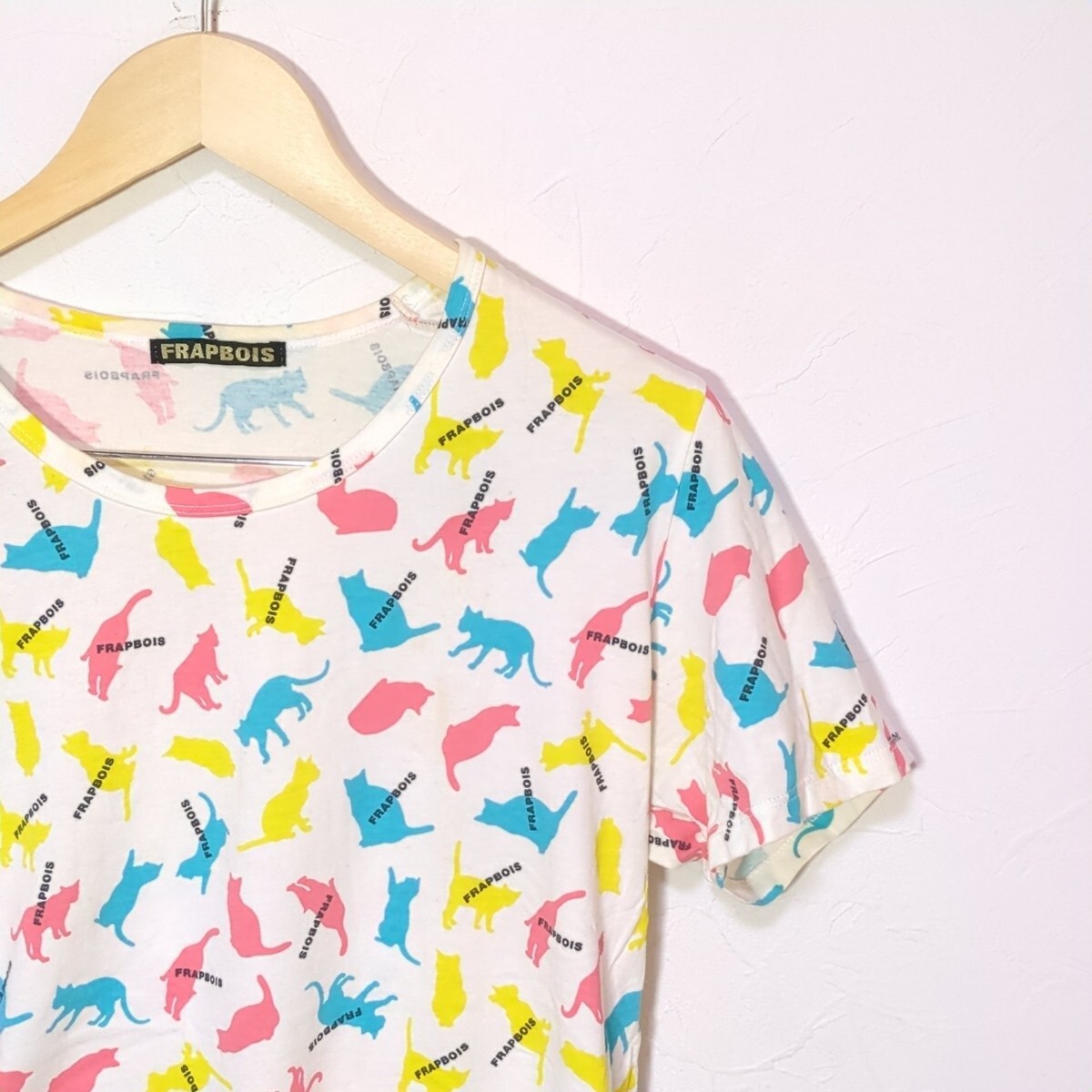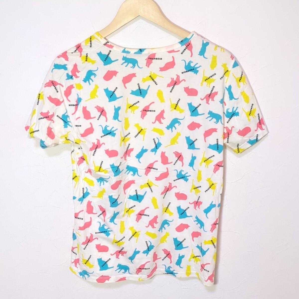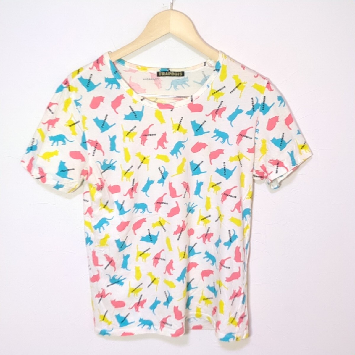 FA115L 日本製 FRAPBOIS フラボア サイズ1 (M~L位) 半袖Tシャツ カットソー 総柄 カラフル 猫柄 キャット CAT ホワイト系 レディース