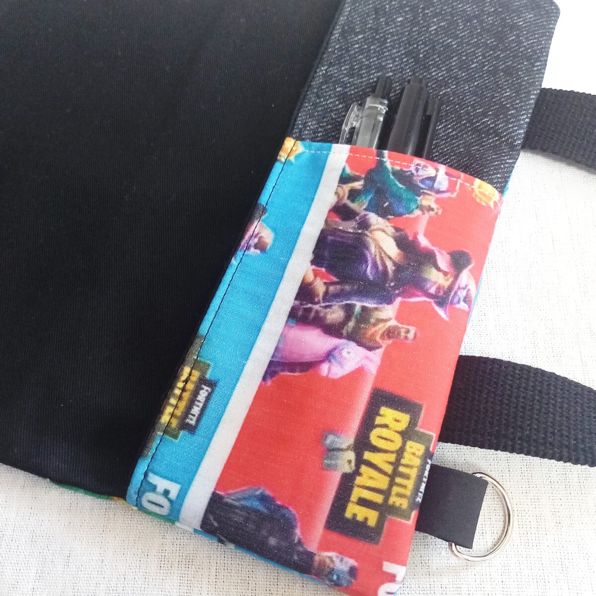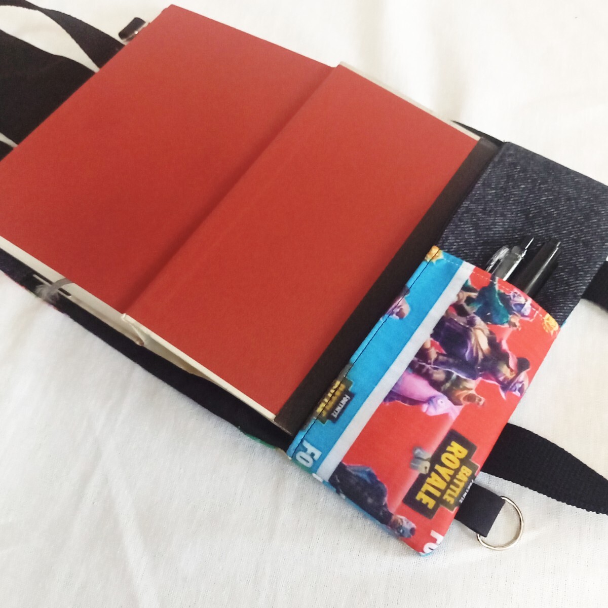 内側の辞書を入れるポケット部分の上にペンや付箋、メモ等を入れる事の出来るポケット(+100円)を付けました。