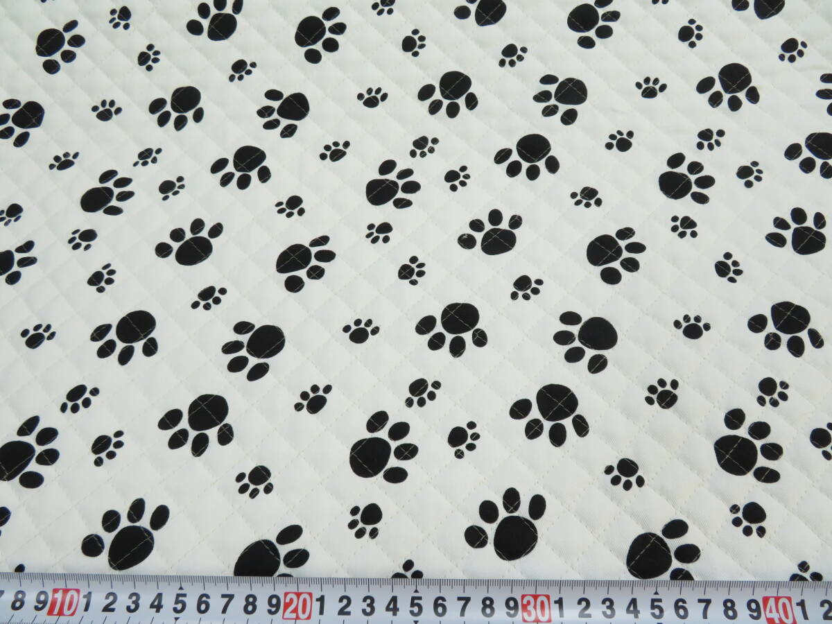 キルティング ●1m単位販売●(Q-34) 足あと 肉球柄 キルト 白色 白 あしあと 足跡 ねこ 猫 いぬ 犬 布 生地 布地 カバン 安い 黒 アニマル