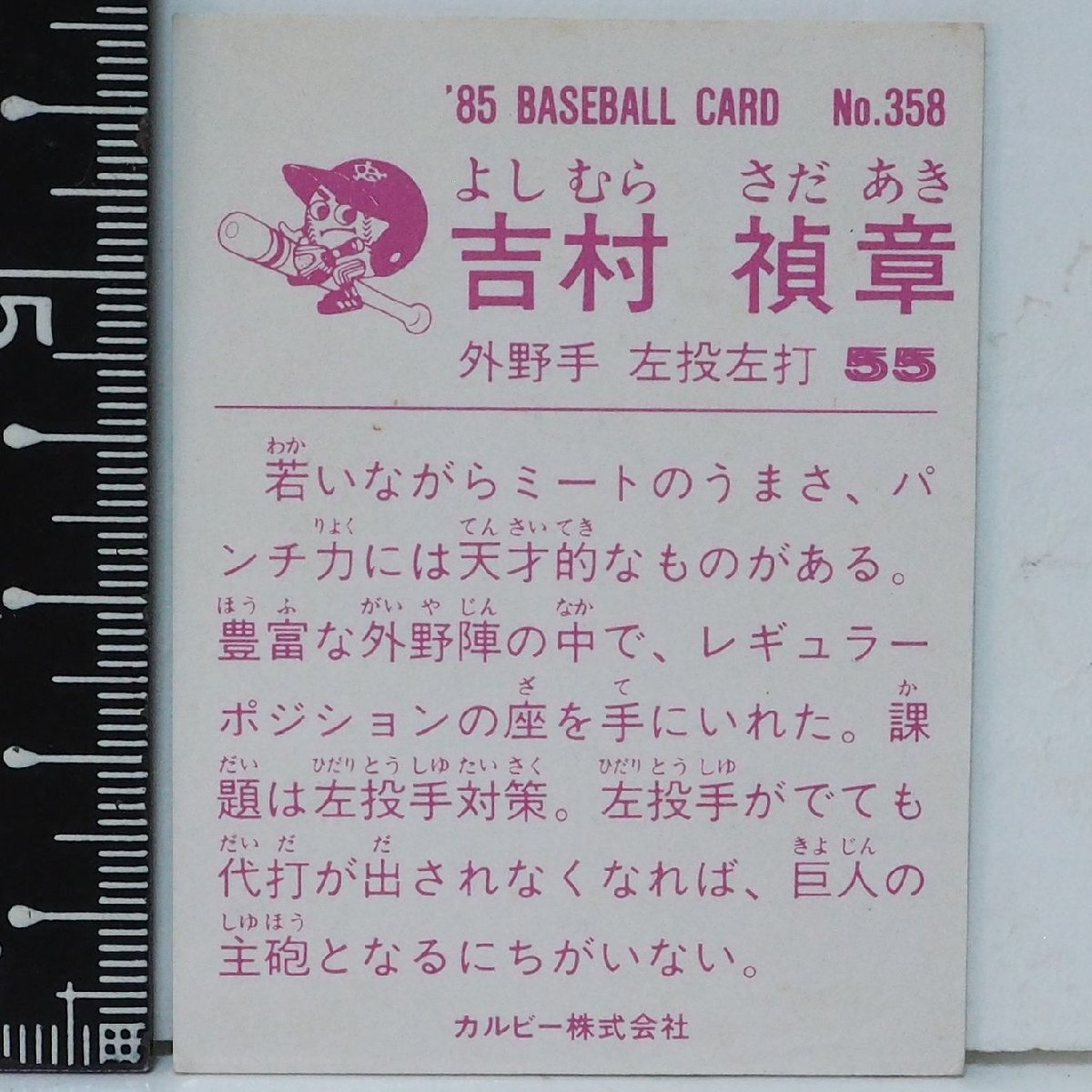 85年 カルビー プロ野球カード No.358【吉村 禎章 外野手 読売ジャイアンツ巨人】昭和60年 1985年 当時物 Calbee おまけ 食玩 BASEBALL中古