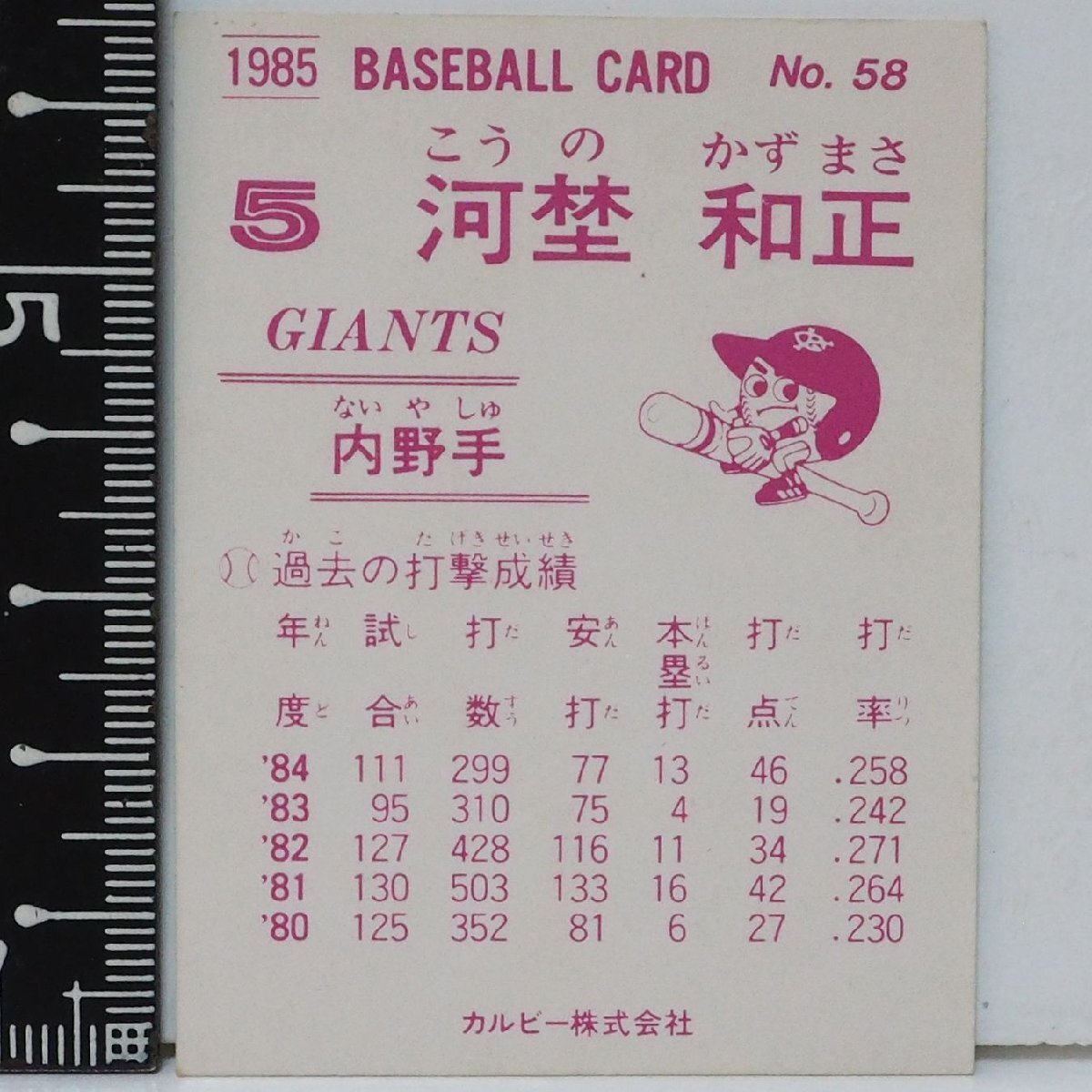 85年 カルビー プロ野球カード No.58【河埜 和正 内野手 読売ジャイアンツ巨人】昭和60年 1985年 当時物 Calbee おまけ 食玩 BASEBALL中古