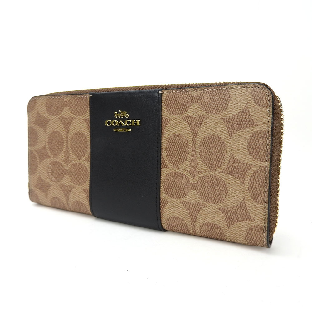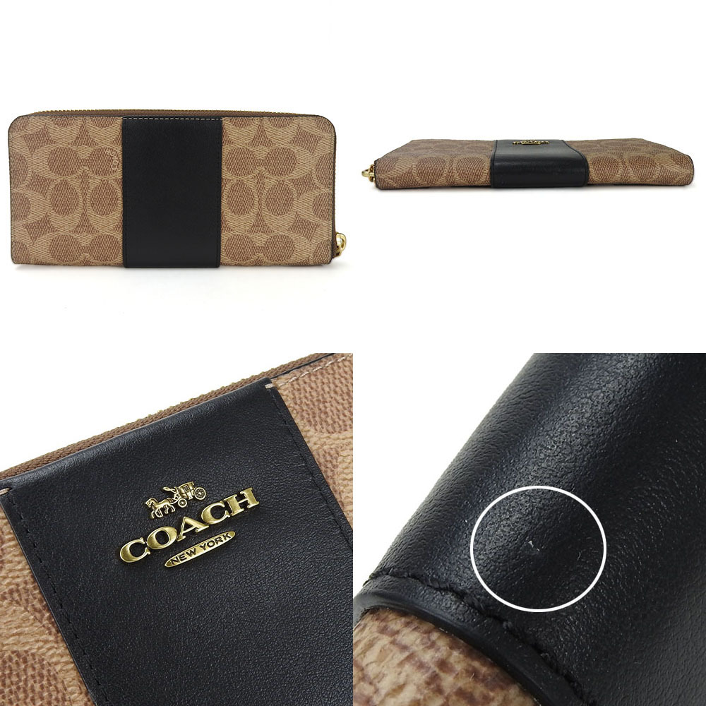 | 品名 | 【中古】 コーチ 長財布 73739 シグネチャー PVC レザー ブラウン タン|ブラック ラウンドファスナー レディース 女性 COACH |