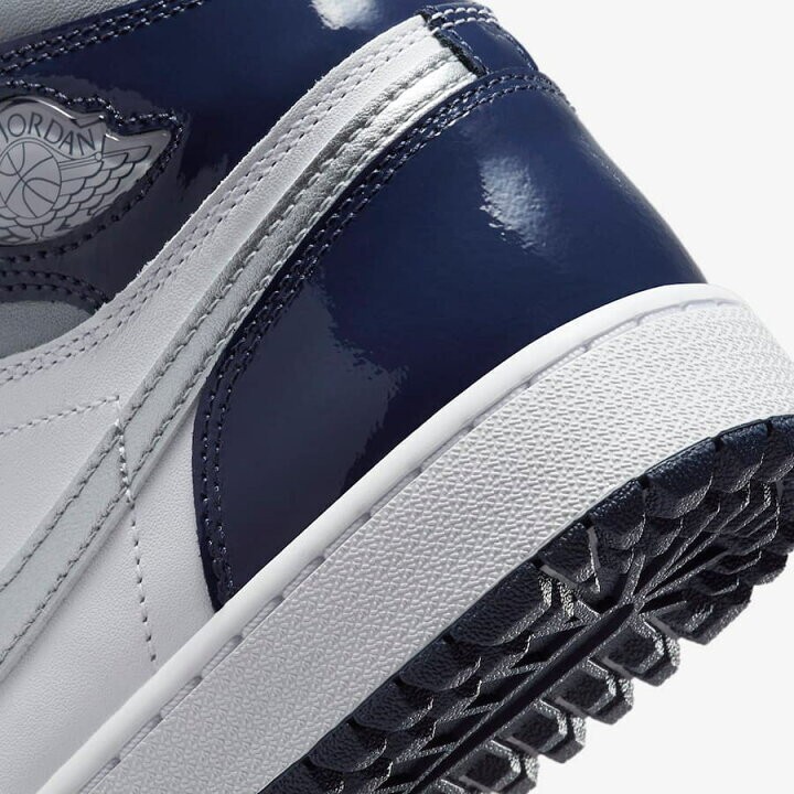 2020年に待望の復刻を果たした「AIR JORDAN 1 RETRO HIGH OG CO.JP "ミッドナイトネイビー"」の配色を彷彿とさせるカラーリング。ホワイトをベースに、メタリックシルバーのスウッシュが駆け抜けます。ネイビーのオーバーレイには、パテント素材を採用。シュータンとインソールにはジャンプマンロゴと"GOLF"のテキストを刻まれております。