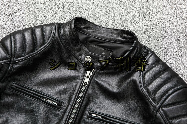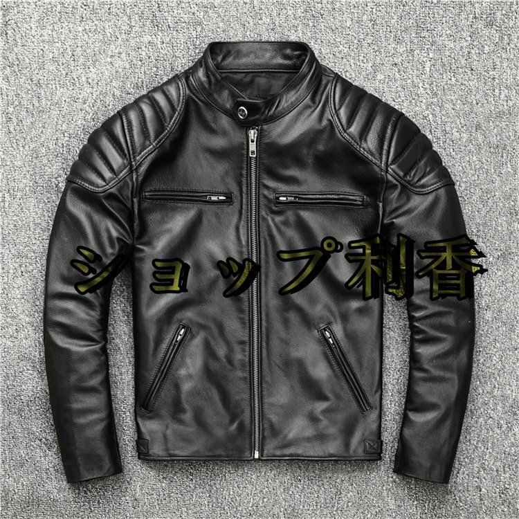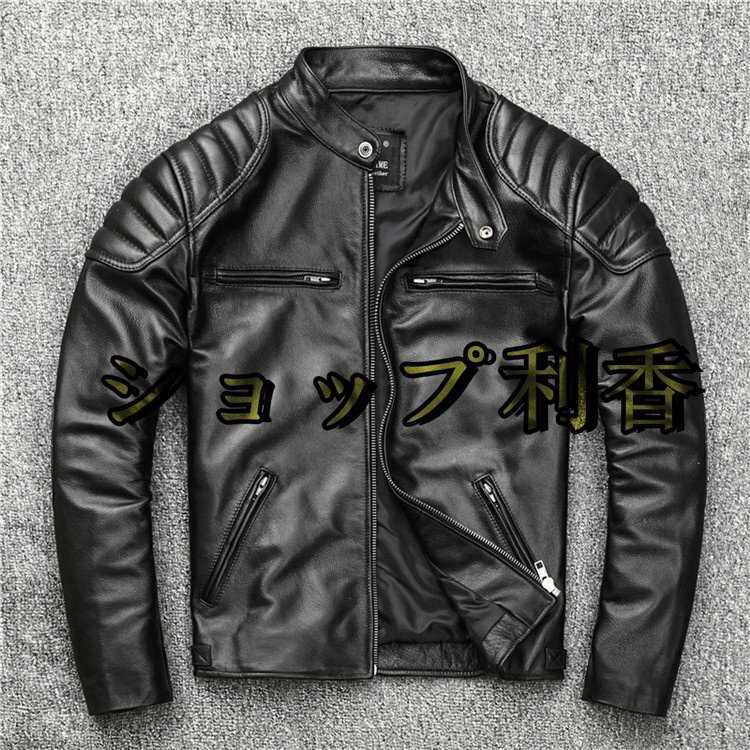 メンズジャケット レザー タイト 牛革 本革ジャケット ブルゾン バイクジャケット オイルレザー 黒 S~6XL