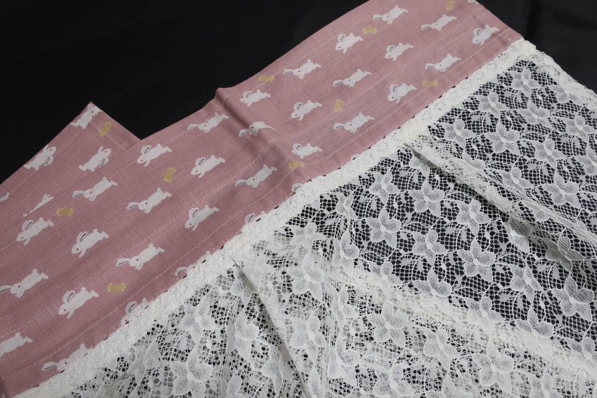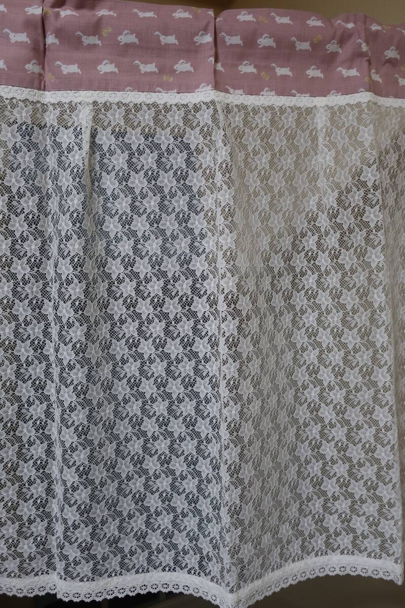 ウサギ柄コットン生地×オーダーレースカーテン生地
