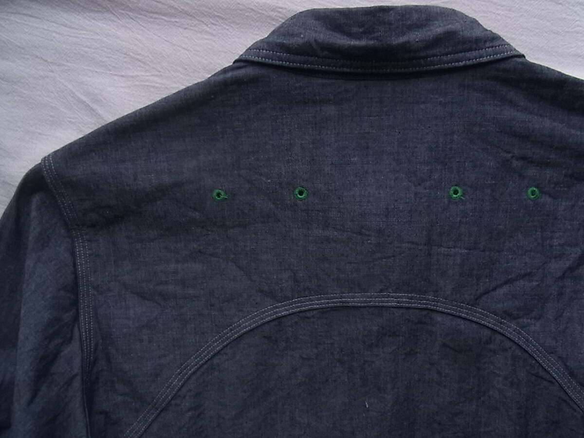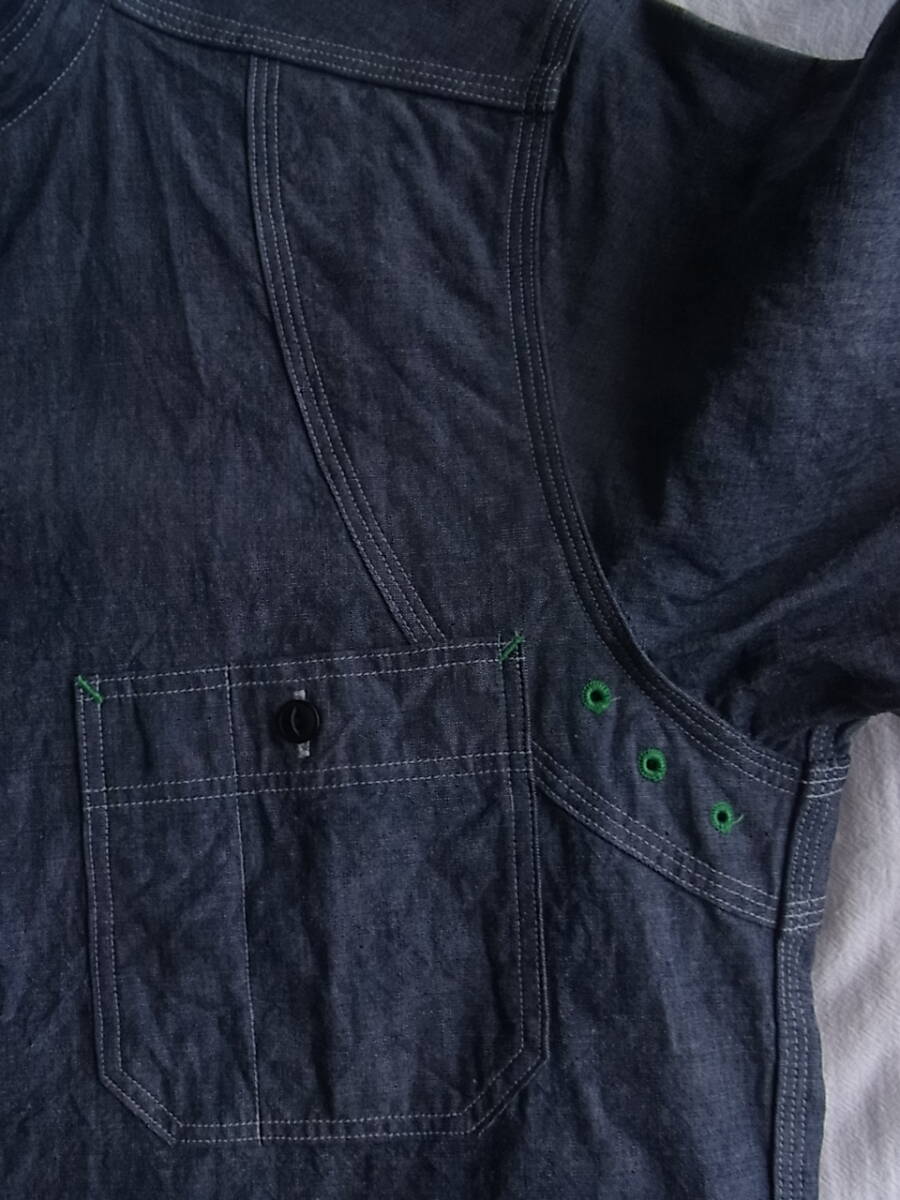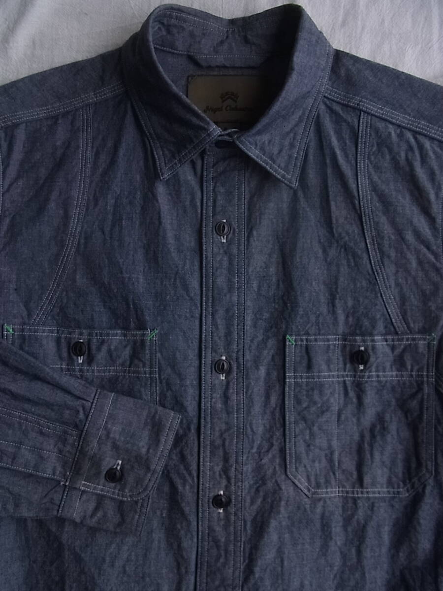 ナイジェルケーボンのインディゴシャンブレー素材のワークシャツになります。USEDですが着用感の少ない綺麗な状態の商品です。