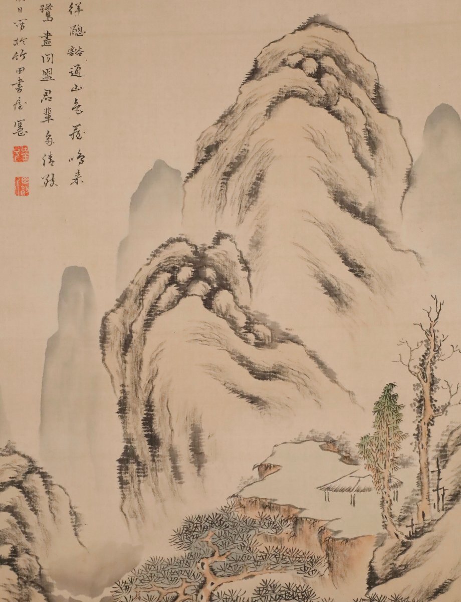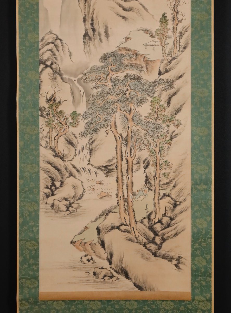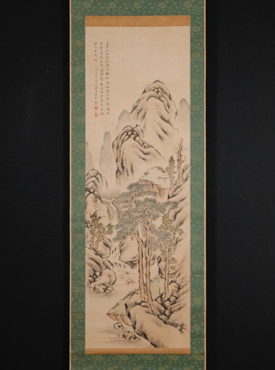 【模写】吉】10448 田能村竹田 山水図 谷文晁師事 南画家 中国画 豊後の人 掛軸 掛け軸 骨董品