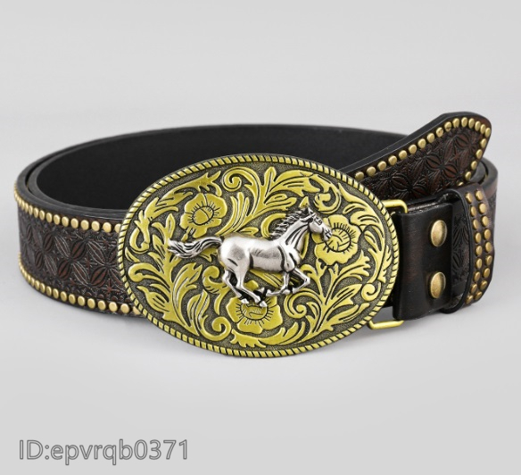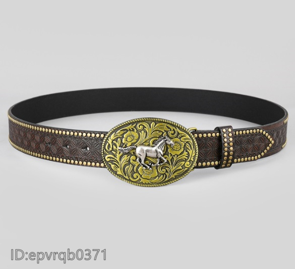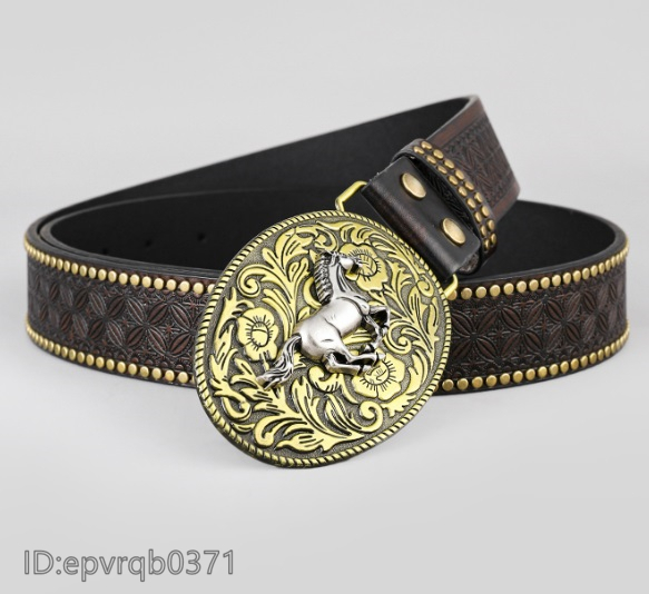 ベルト◆新品 メンズ レザーベルト ピンバックル式 馬バックル 柄物 革ベルト ポンチ付き 長さ調整可能 シルバー/茶