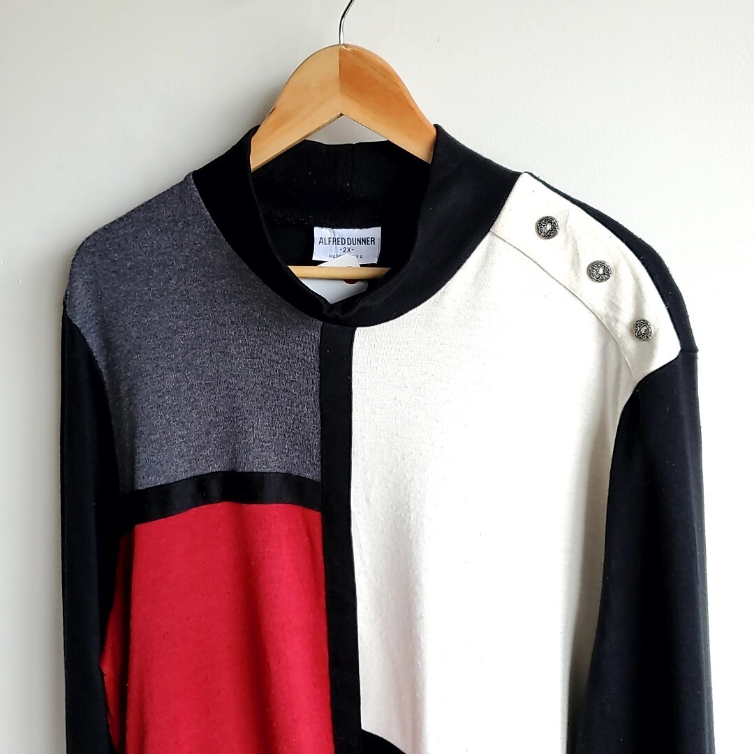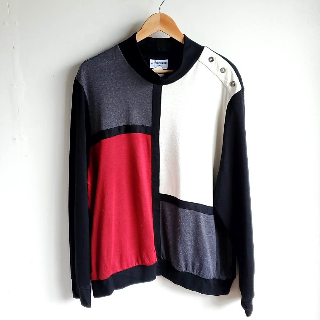 C23◆USA製 ALFRED DUNNER スウェット size2X 黒×白×赤×グレー トレーナー 中古 USED 古着 ユニセックス