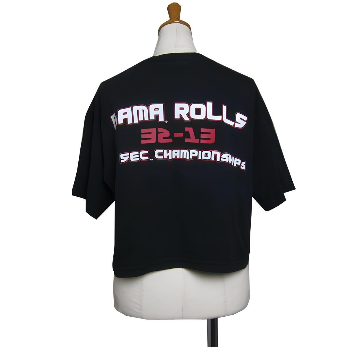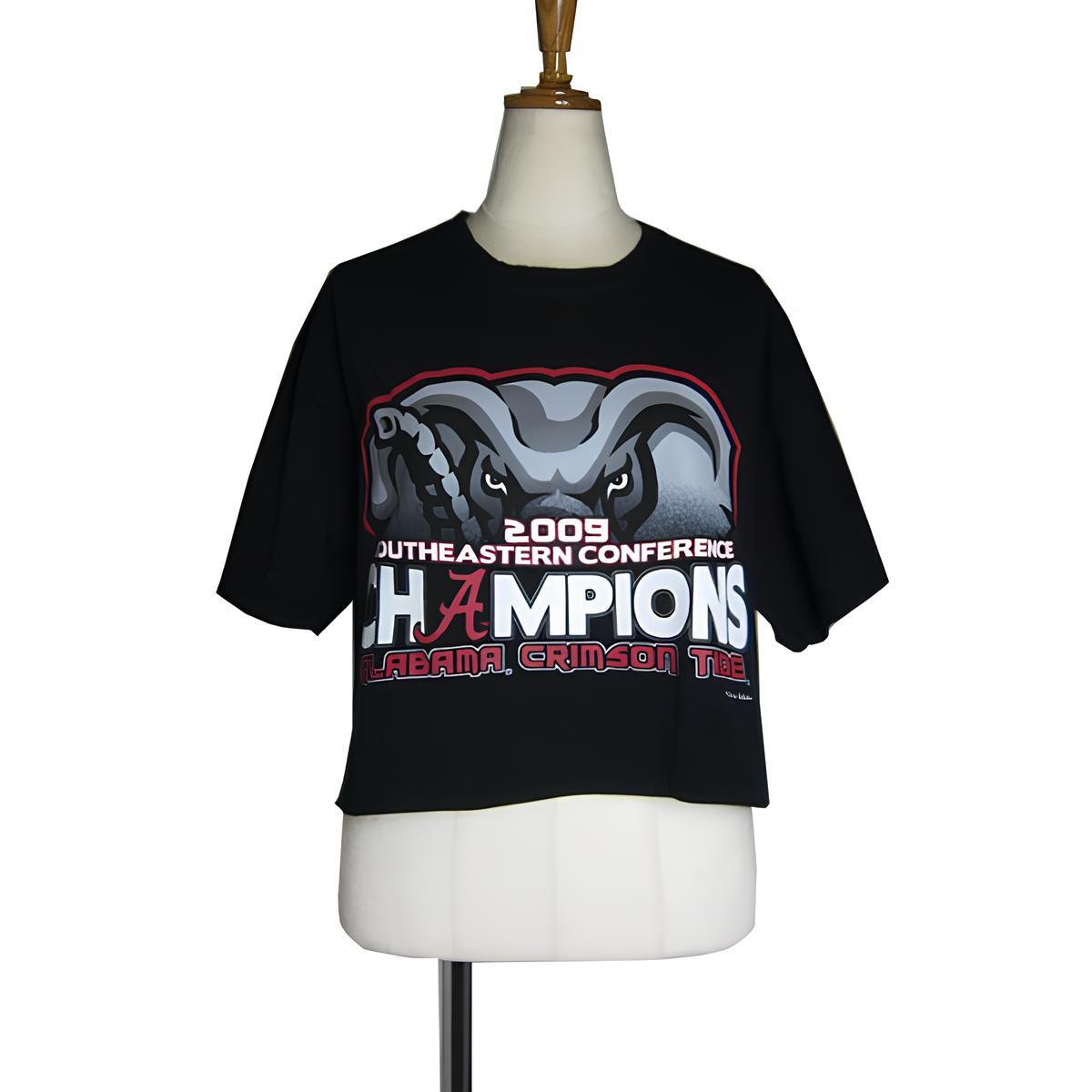 ALABAMA CRIMSON TIDE ショート丈 リメイク プリントTシャツ ティーシャツ 黒色 女性向き アメリカ輸入古着 ユーズド tee tシャツ #n-50