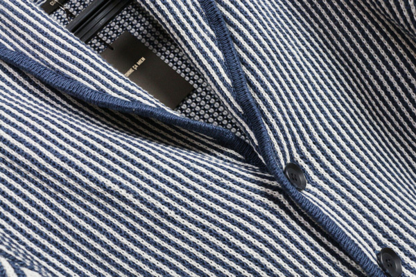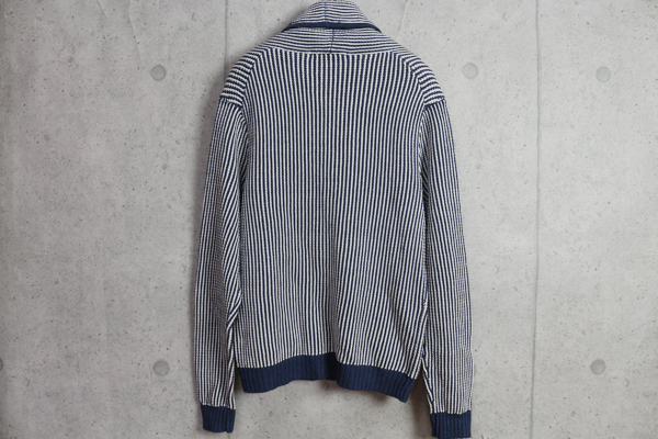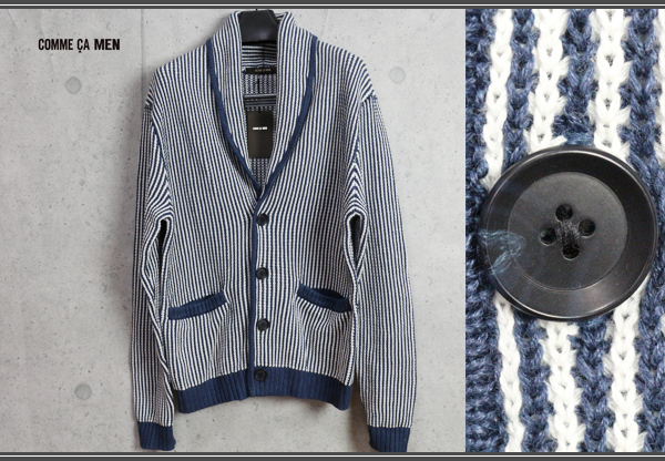 コムサ系のメインブランド、コムサメン(COMME CA MEN)のタックストライプ リネン コットン ニット ショール カーディガン。