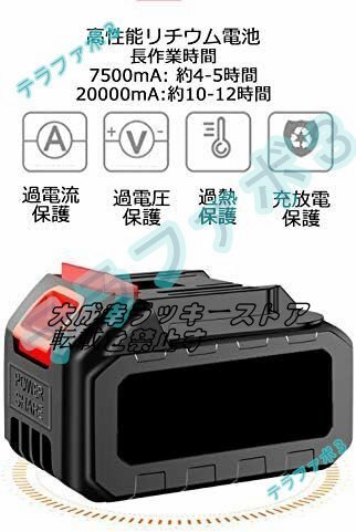 「充電式・長時間作業」バッテリー・充電器付き、7500mA/20000mAの電池が選択できます。充電当たりの作業時間:7500mA: 約4-5時間 、20000mA:約10-12時間。