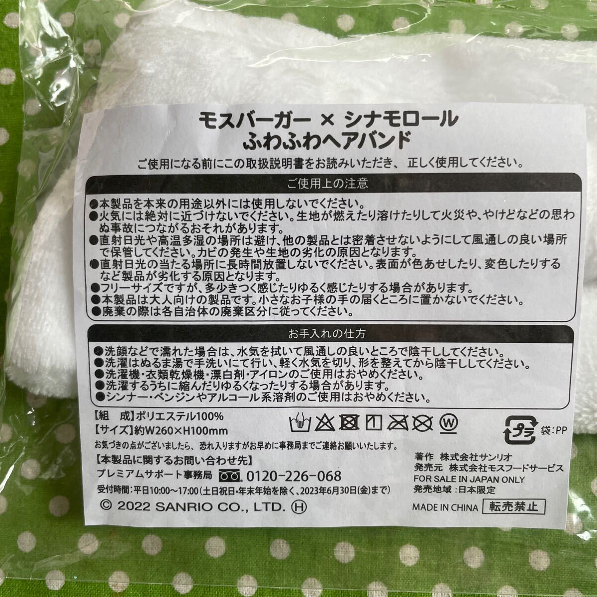 ♪シナモロール ふわふわヘアバンド*×モスバーガー♪