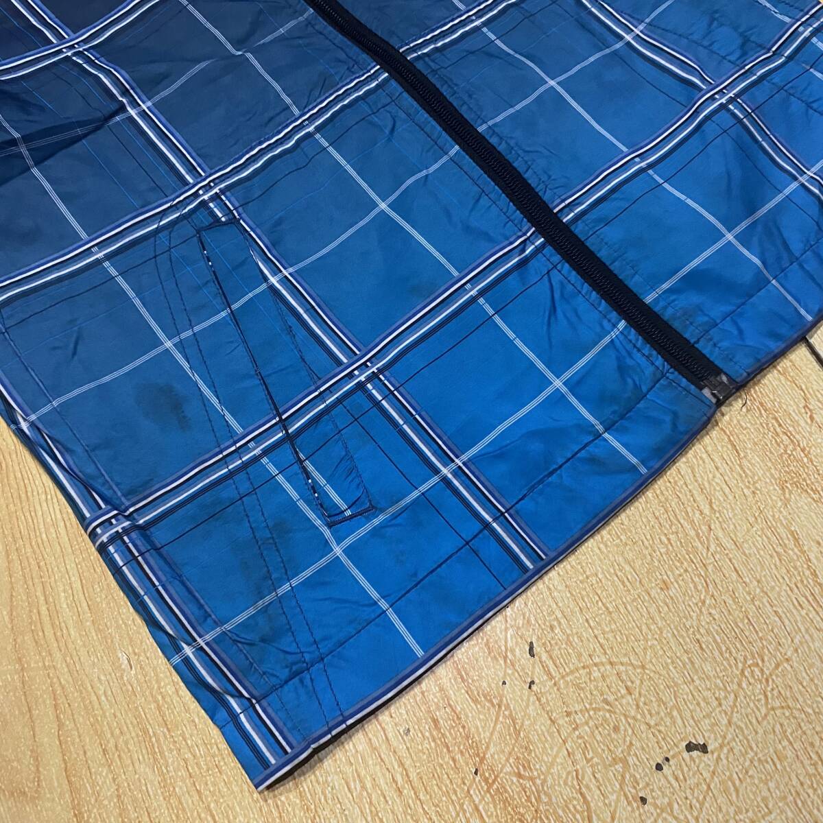 前身頃左裾のメッシュ裏地に穴開きがあります。特にリペアしなくても普通にご着用いただけると思います。
