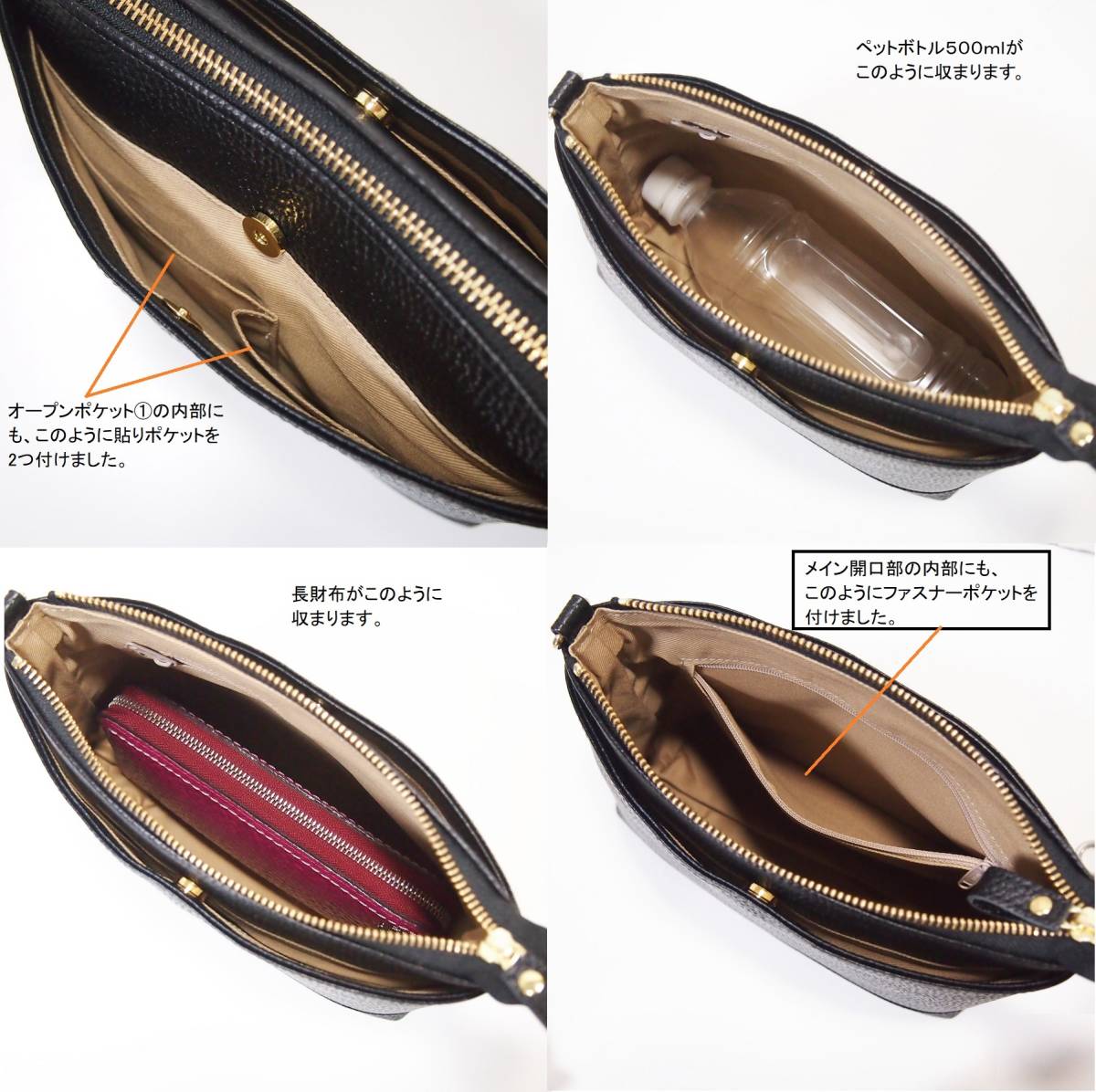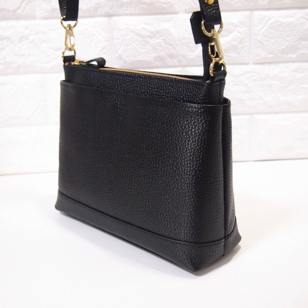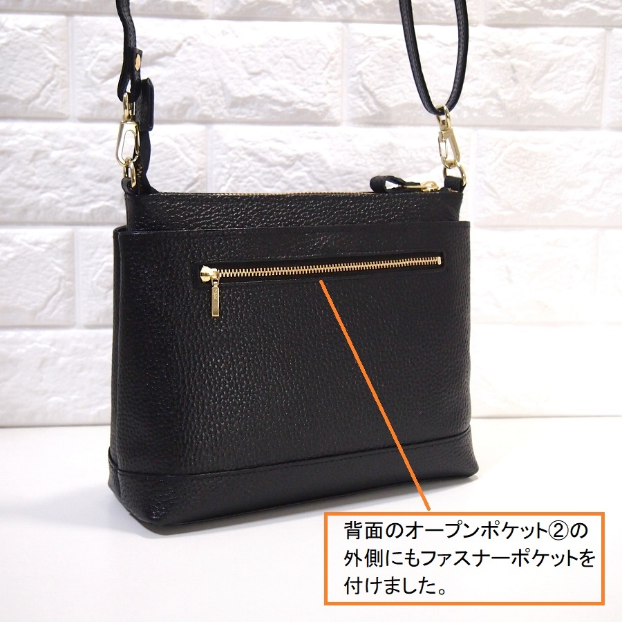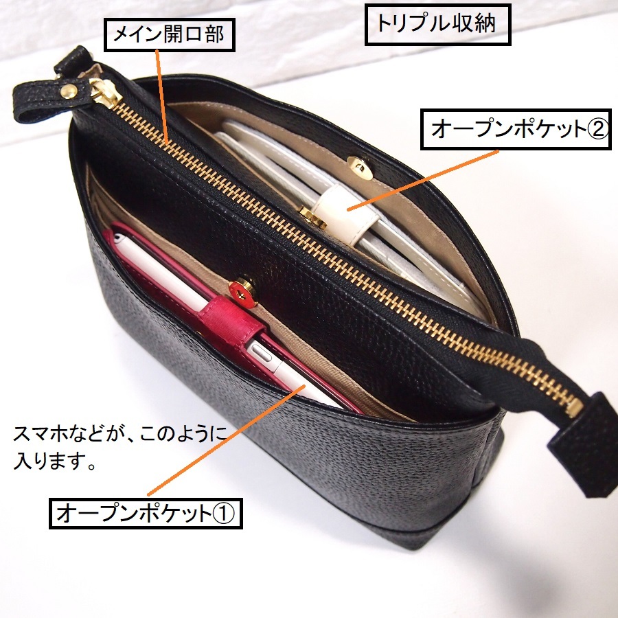 ★新品★ハンドメイド★日本製★本革★トリプル収納Ⅱ★収納多数★斜め掛けショルダーバッグ★お財布ポシェット★クロ色★超軽量★