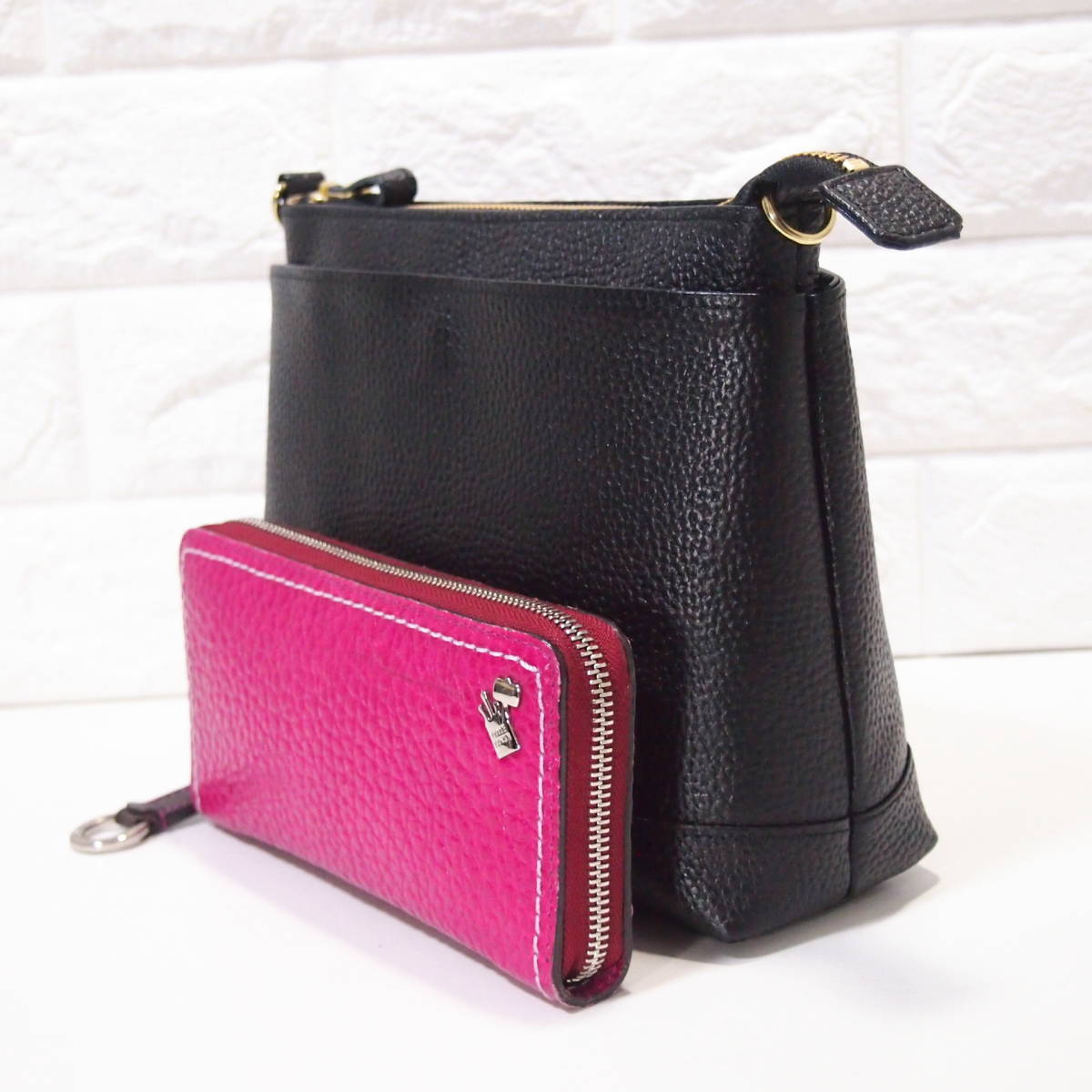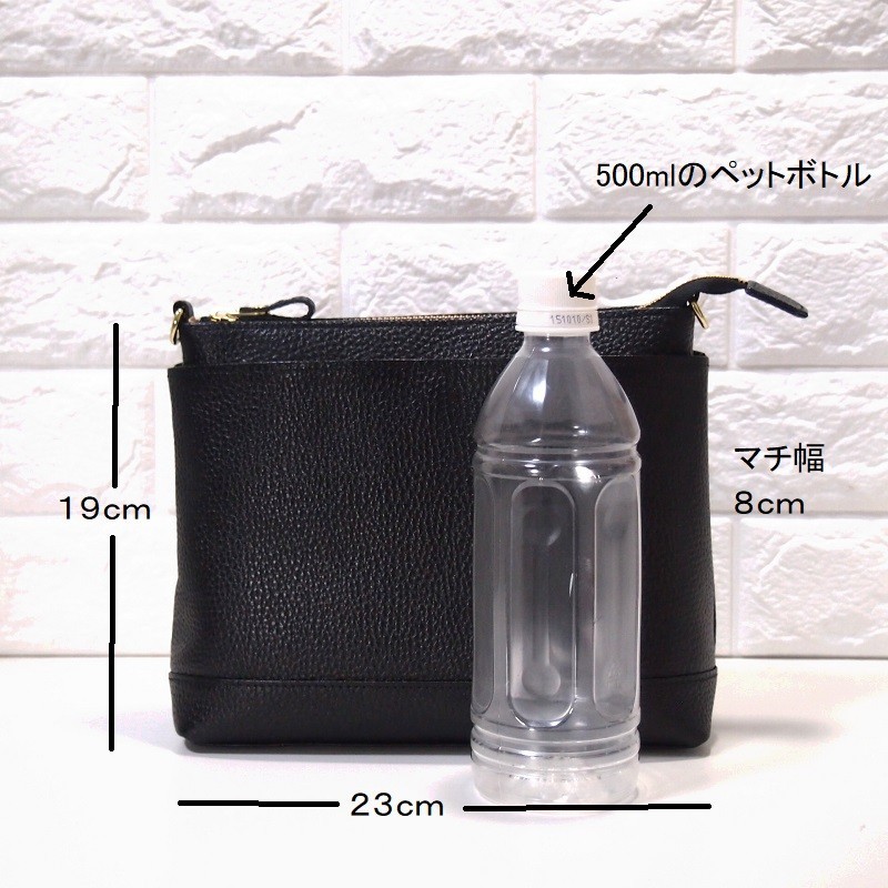 ●ミニバッグでコンパクトなのに、マチ幅と高さがしっかりあるので、長財布やペットボトルも横置きでスッポリ収まります。(画像を参照ください)