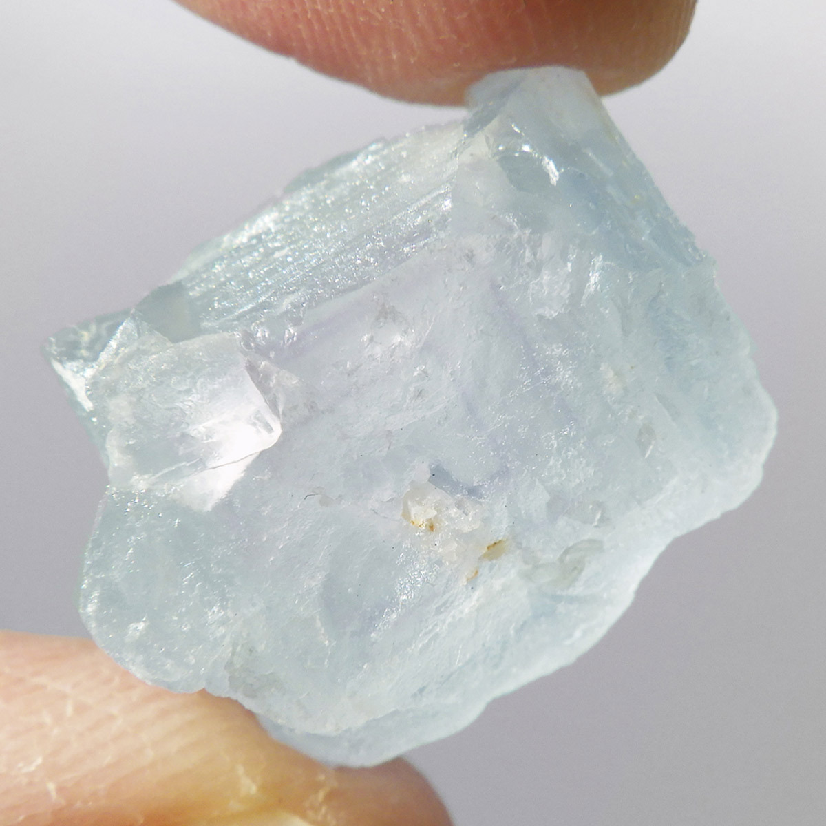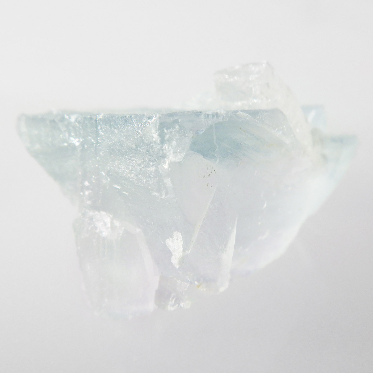 アメリカ・ニューメキシコ州産のブルーフローライト原石です。カラーの豊富なフローライトの中でも、特にブルーとイエローは希少性が高いことで知られています。ニューメキシコ州産のブルーフローライトは、マットで淡く優しいブルーが大変珍しい希少な鉱物です。角度によって色合いが変化し、ブルー、パープル、クリアと結晶のグラデーションが非常に美しいです。淡く微妙な奥行きのある色彩を写真で表現するのが難しかったのですが、かわいらしくて綺麗ですのでおすすめです。