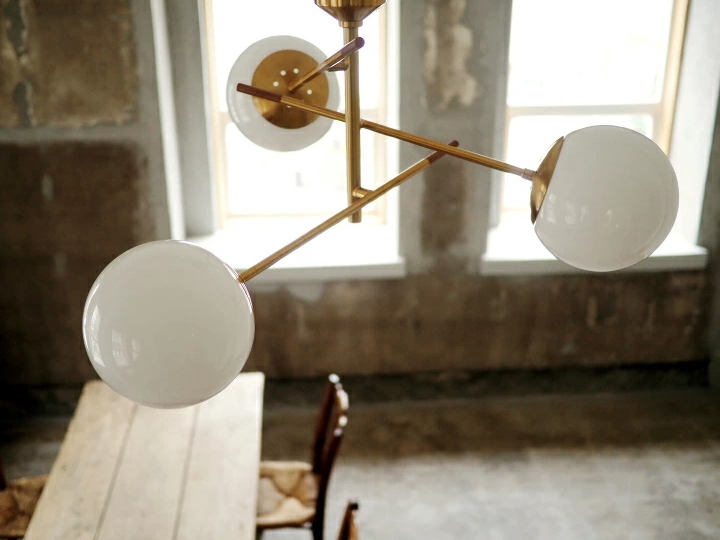 3灯シーリングライト 少し大きめのガラスシェードが存在感満点のドリットシーリングライト。 3本の細いアームにガラスシェードを合わせたシンプルモダンなデザインになっています。 華やかなゴールドのカラーリングも相まって、海外インテリアのような非日常を味合わせてくれるデザインに。 少しアメリカのダイナーを感じさせる雰囲気もおしゃれです。 直径12.5cmを超える配線機器には取り付けできませんのでご注意ください。 【サイズ・素材など】 ■幅720×奥行650×高さ475mm 約3.3kg ■シェード:Φ180mm ■ガラス、スチール、木、アルミ ■取り付け:引っ掛けシーリング ■スイッチ:壁スイッチ ■対応電球(別売り):E17/60W ホワイトミニクリプトン球(LED対応) 【送料・その他】 ■送料無料(沖縄、離島は別途見積り) ■発送まで2.3営業日を頂いております。(土日祝は休業日です) 【その他・必ずご確認下さい。】 *お支払いいただく金額は落札金額+配送料金となります。 *商品の直接取引・送料着払いには対応しておりませんのでご了承ください。 *初期不良や運搬中の破損などは交換対応となります。 *商品が到着しましたら、不良、破損がないかご確認ください。 万一破損等ございましたら、3日以内にご連絡ください。お時間がたちますと、交換等できない場合がございます。 *当店の商品はすべて新品商品です。 *土日祝は休業の為、発送やご連絡ができません。 よろしくお願いします。 |