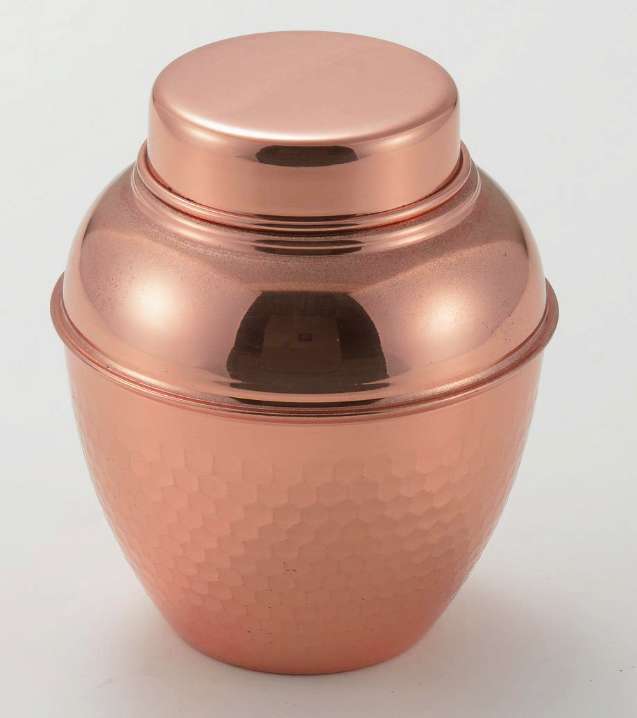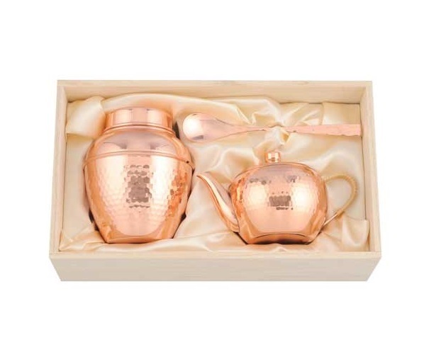 ☆銅製槌目紋様茶器3点セット後手急須茶こし付・茶壺・長茶匙・各1Pミラー仕上日本製新品