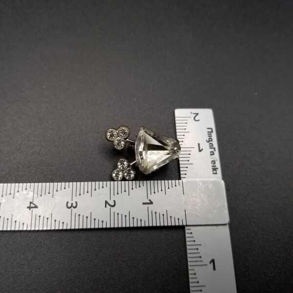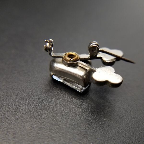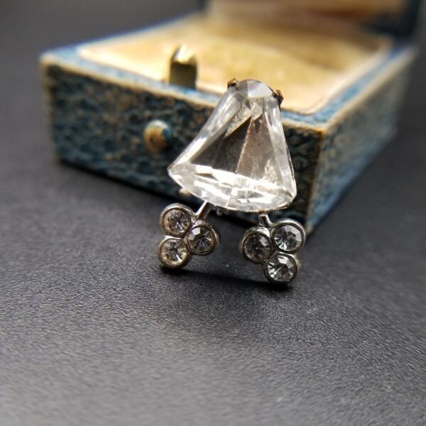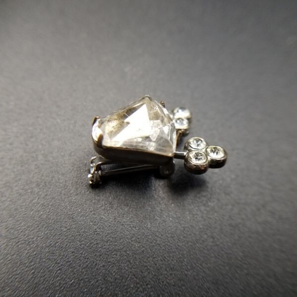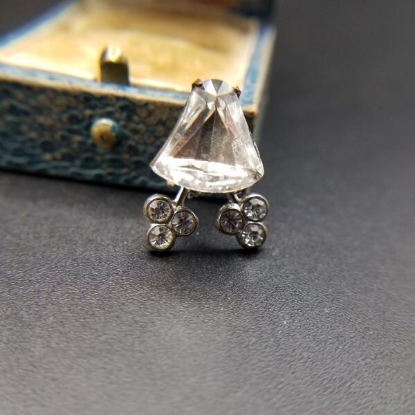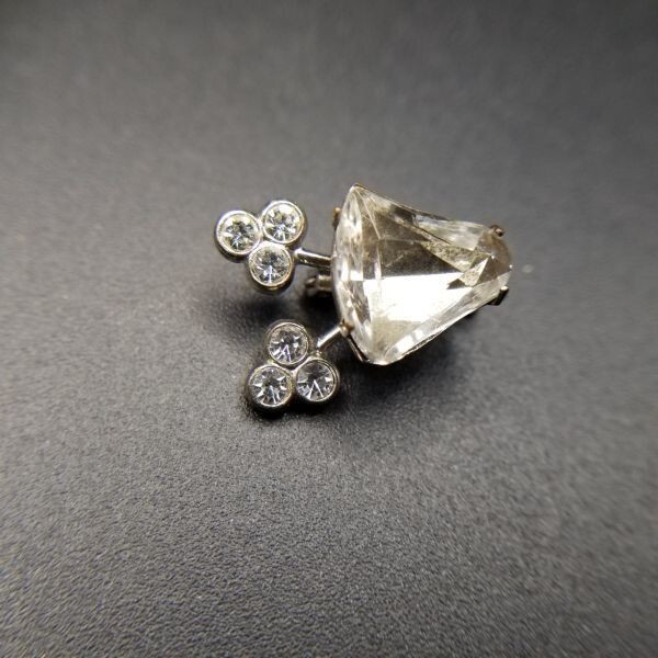 個性派 小ぶり 米国 ヴィンテージ ブローチ クリアラインストーン 三つ葉 アールデコ 昭和レトロ コスチュームジュエリー SNF13